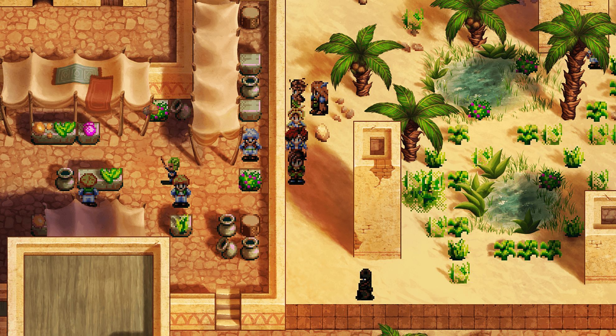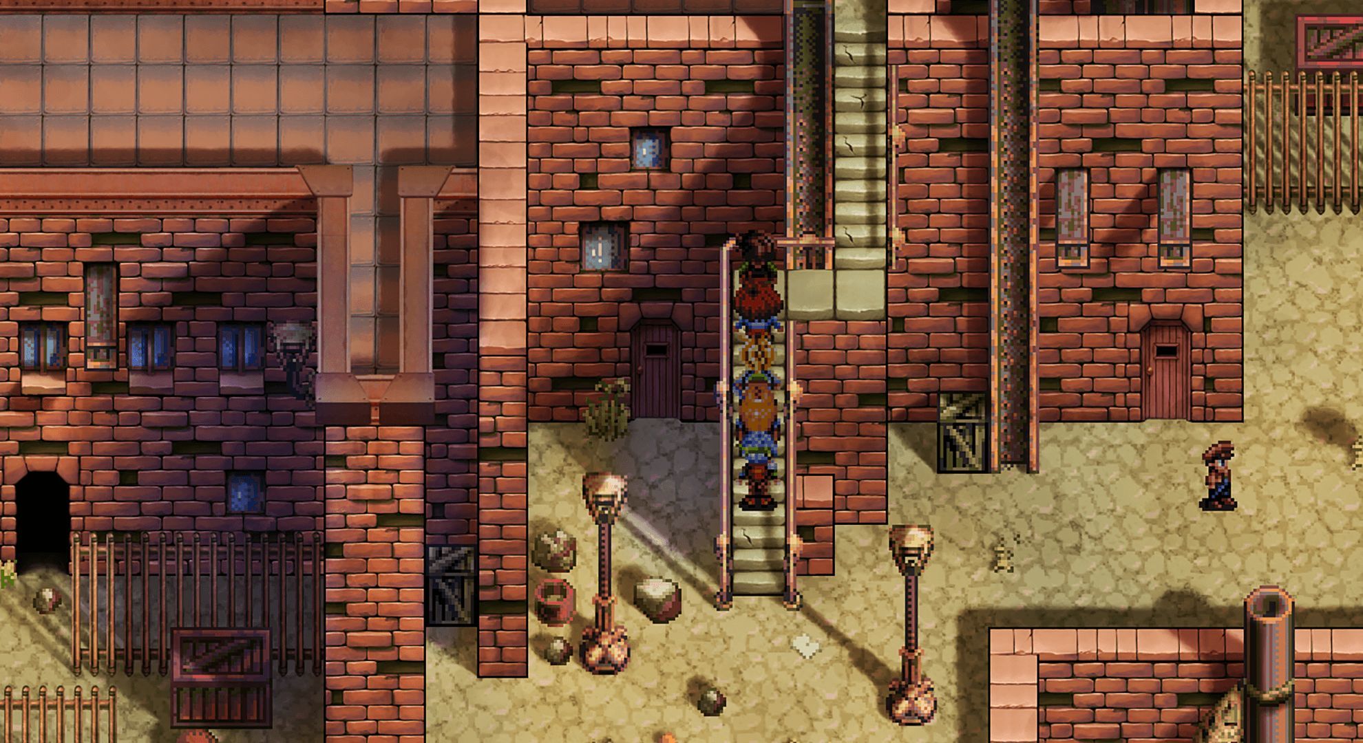 Aunque la historia comparte lugares comunes y estereotipos recurrentes, no sería justo ignorar que está bien escrita y que ofrece un buen tratamiento de sus personajes. Responden a arquetipos, sí, y algunas situaciones son previsibles para todo veterano del género, pero del mismo modo ofrece una experiencia narrativa interesante. No podemos decir que sea el juego de rol con mejor guion de la historia, pero desde luego se nota que los responsables han puesto atención a esta parte del juego para conseguir algo que sea a la vez familiar y original. Es otro de esos aspectos en los que queda claro que Pier Solar and the Great Architects no pretende deconstruir ni revolucionar un género, sino, más bien, sumarse a él con sus mejores dotes.