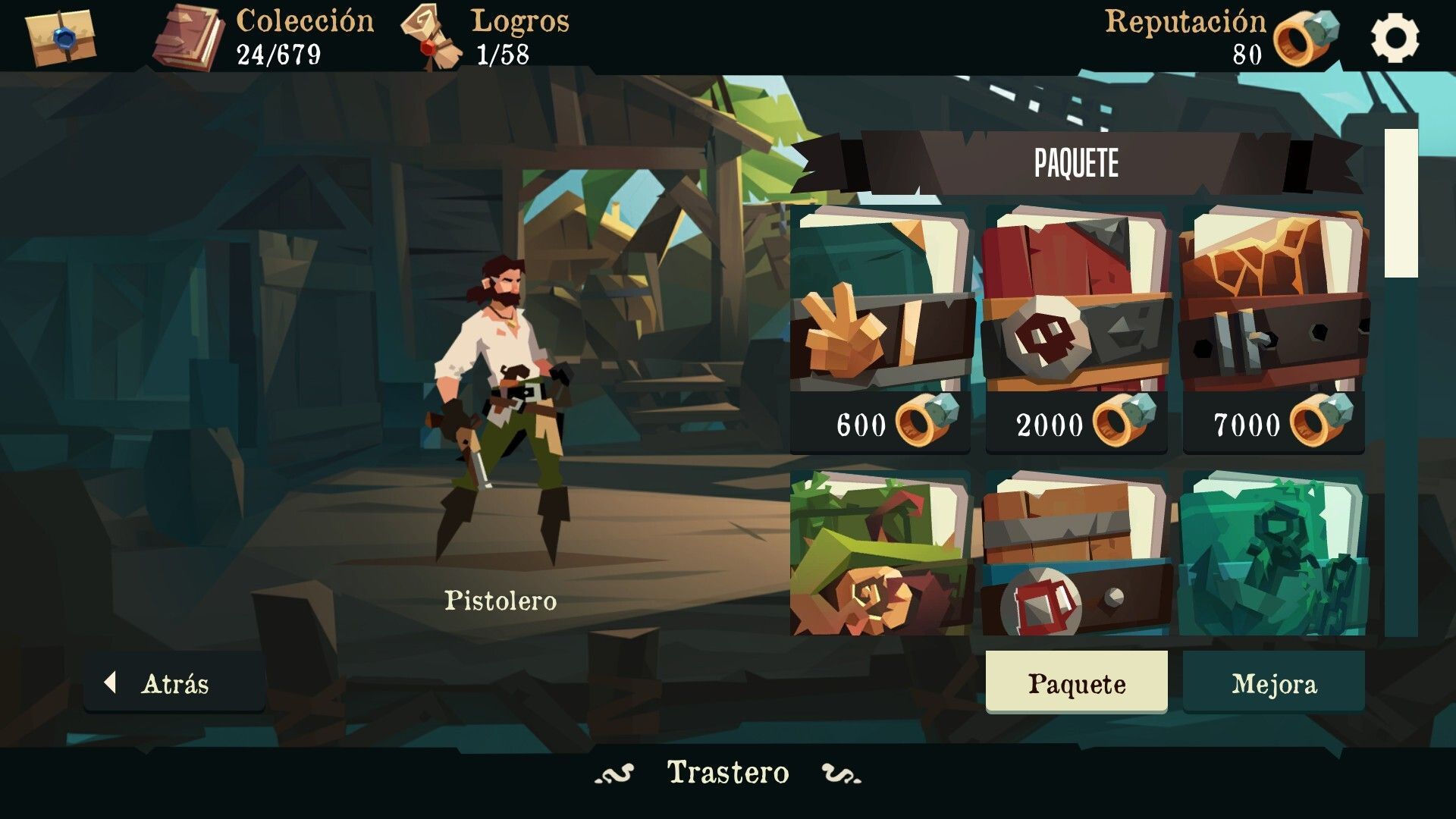 Suponiendo que logres derrotar al jefe, desbloquearás un nuevo capítulo, pero estos enemigos finales son más duros que los piratas normales y esconden ataques que te pillarán desprevenido la primera vez que te enfrentes a ellos, así que no será raro que debas volver a empezar. El nivel de dificultad en los primeros compases es asequible –hay muchos roguelike que te dejan claro nada más empezar que son imposibles de superar sin muchos reintentos- pero esto es engañoso; otra cosa es, claro, llegar muy lejos. No vamos a mentir, necesitarás paciencia si realmente quieres ser el rey de los mares.
