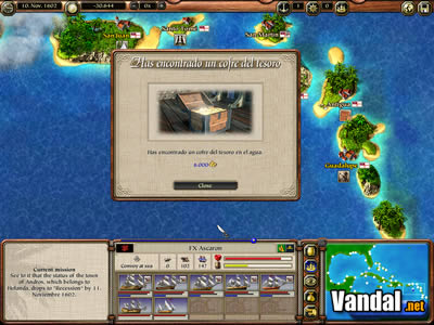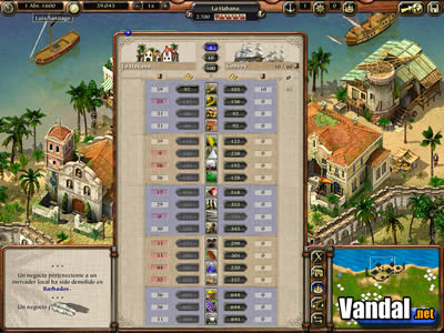 Los combates son simples, bastante largos y un tanto extraños, pero pueden ser divertidos cuando le coges el tranquillo y tienes una buena flota. Sin duda lo mejor del juego llega cuando ya somos medianamente poderosos y podemos optar a cosas más importantes, como combatir a los piratas o formar parte del ejército de nuestra nación. Pero si somos más pacifistas, siempre existe la posibilidad de asentar nuestra vida en una hermosa villa mientras nuestros trabajadores extraen los bienes de múltiples ciudades y hacen que tus riquezas se multipliquen... Todo ello en perfecto castellano, escrito y hablado, con un magnífico manual y un precioso mapa de acompañamiento, que trae la ficha de todas las naves del juego y todos los bienes producidos en cada ciudad, para ayudar al jugador. Sin duda alguna la presentación de los juegos de FX sigue a gran altura. Y a bajo precio. Un interesante títulos para los fans de la estrategia comercial... y no tan comercial.