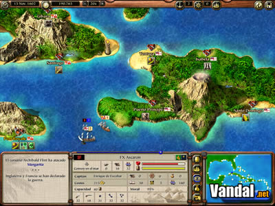 Por otro lado, son importantes también las relaciones internacionales. En principio partimos de la neutralidad (salvo en alguna campaña), pero las diferentes naciones irán ofreciéndonos su alianza, especialmente cuando se encuentren en guerra con algún otro país. De igual manera podemos permanecer al margen de los conflictos políticos y dedicarnos únicamente al comercio. Pero la guerra y las disputas no permanecen siempre, la paz también sabe hacerse respetar en el Caribe.