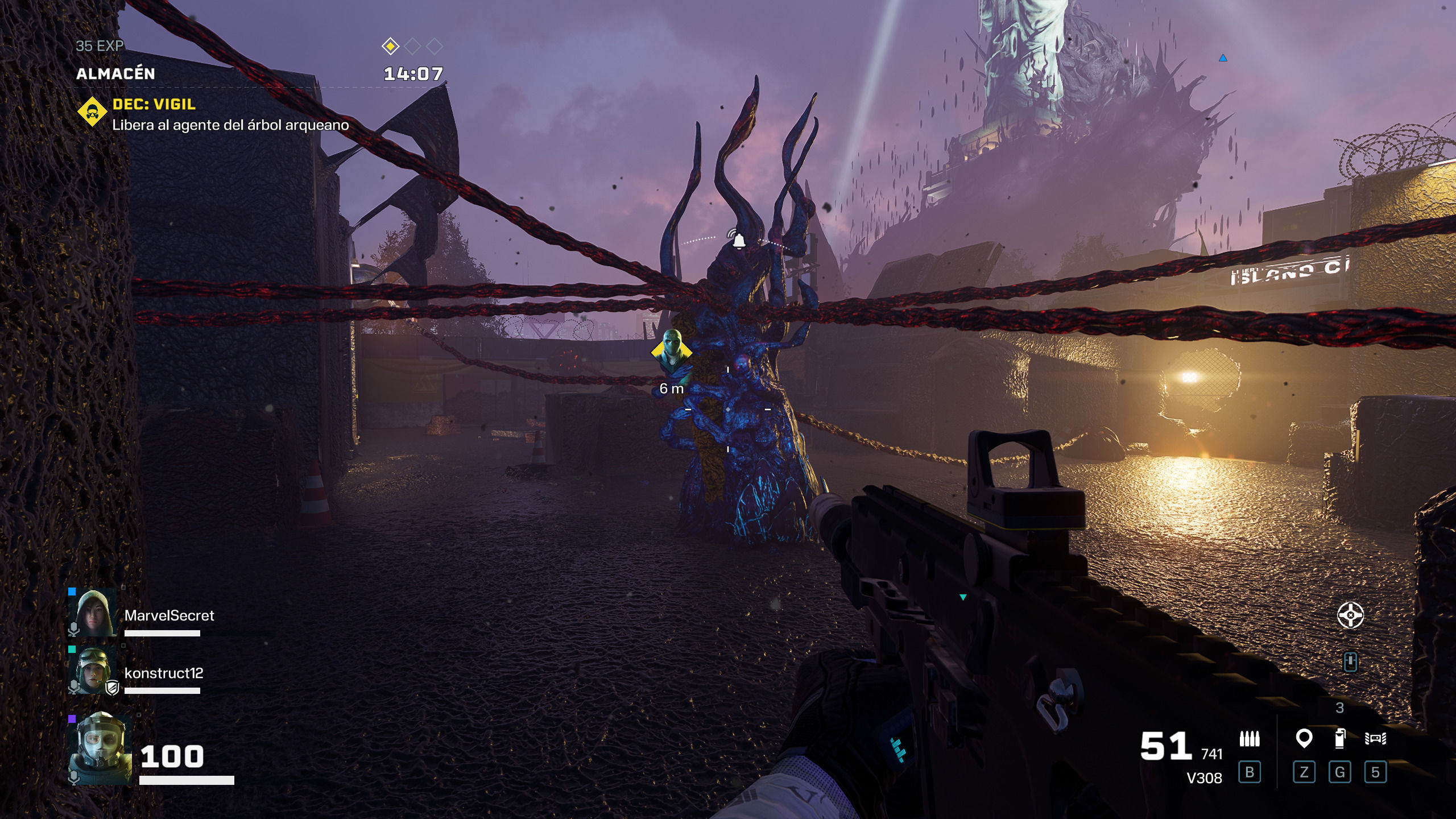 Una mecánica de Rainbow Six Extraction que nos ha gustado especialmente ha sido la de los agentes desaparecidos en combate. Cuando afrontamos un nivel y nuestro agente muere, no podremos volver a jugarlo con este mismo personaje hasta que no lo rescatemos, teniendo que organizar una incursión para recuperar a este agente desaparecido en combate, teniendo que rescatarlo de una suerte de árbol rodeado de una buena cantidad de monstruos.