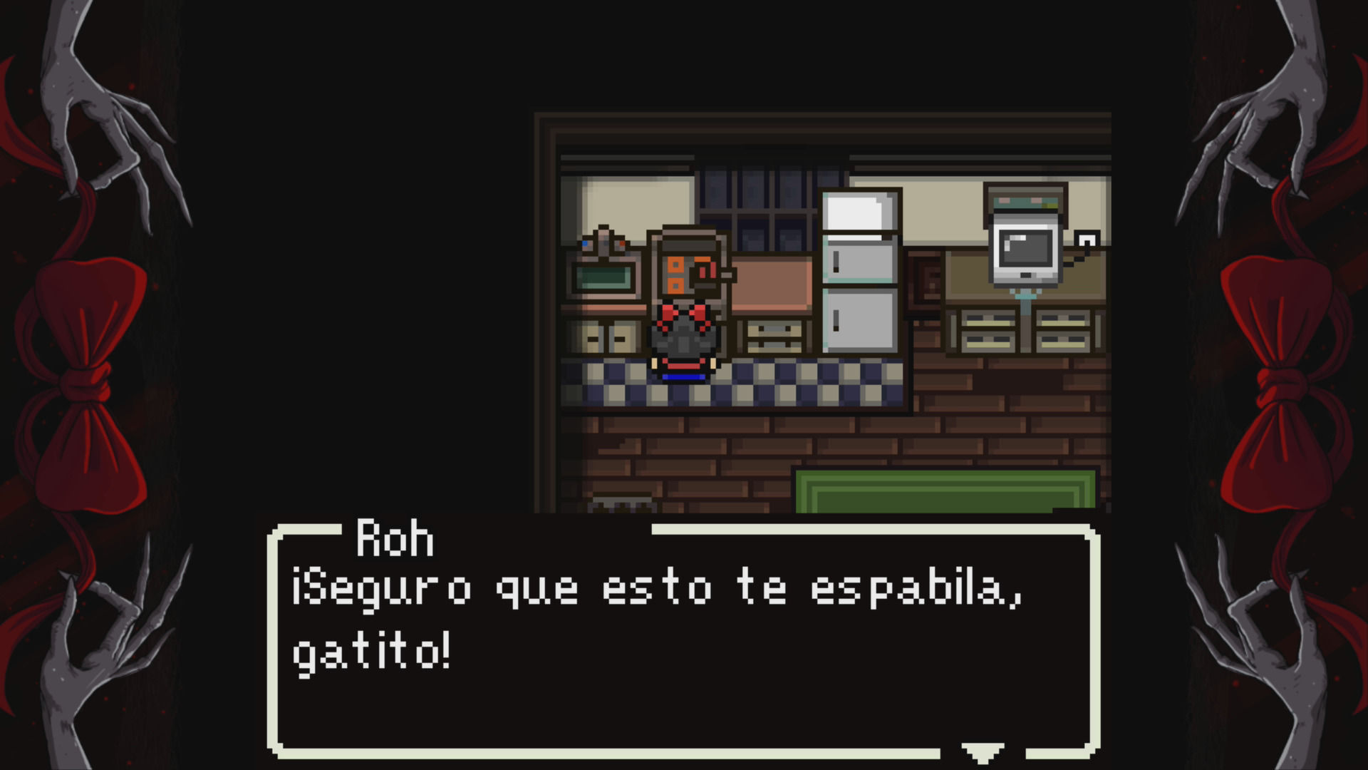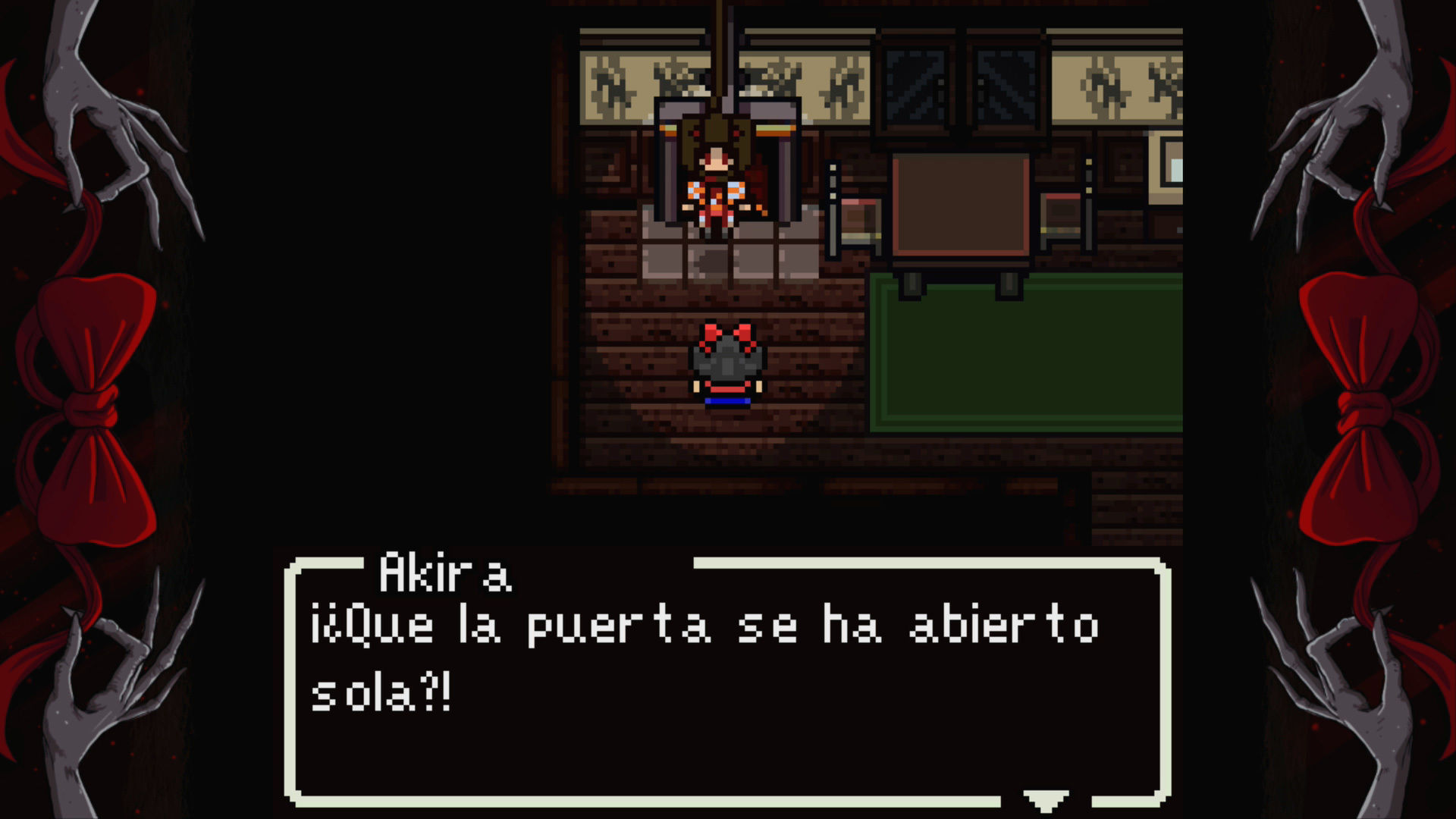 Los creadores de Red Bow lo comparan con el estilo retro de Game Boy, aunque no hay las restricciones de esa paleta y el sonido no es chiptune. Es esa estética retro un poco indefinida de baja resolución que hemos visto en multitud de juegos indie. Sencillamente cumple, la música acompaña y los escenarios no están mal, pero dada la escasa duración de su historia apenas veremos zonas diferentes. Nos habría gustado que el juego fuese algo más amplio, para explorar zonas opcionales y que se puliesen ciertos aspectos de la experiencia –menos muros invisibles que nos impiden avanzar, corrección de algún fallo gráfico en la superposición de sprites, más agilidad para buscar un objeto del inventario y utilizarlo en su contexto, etc-.