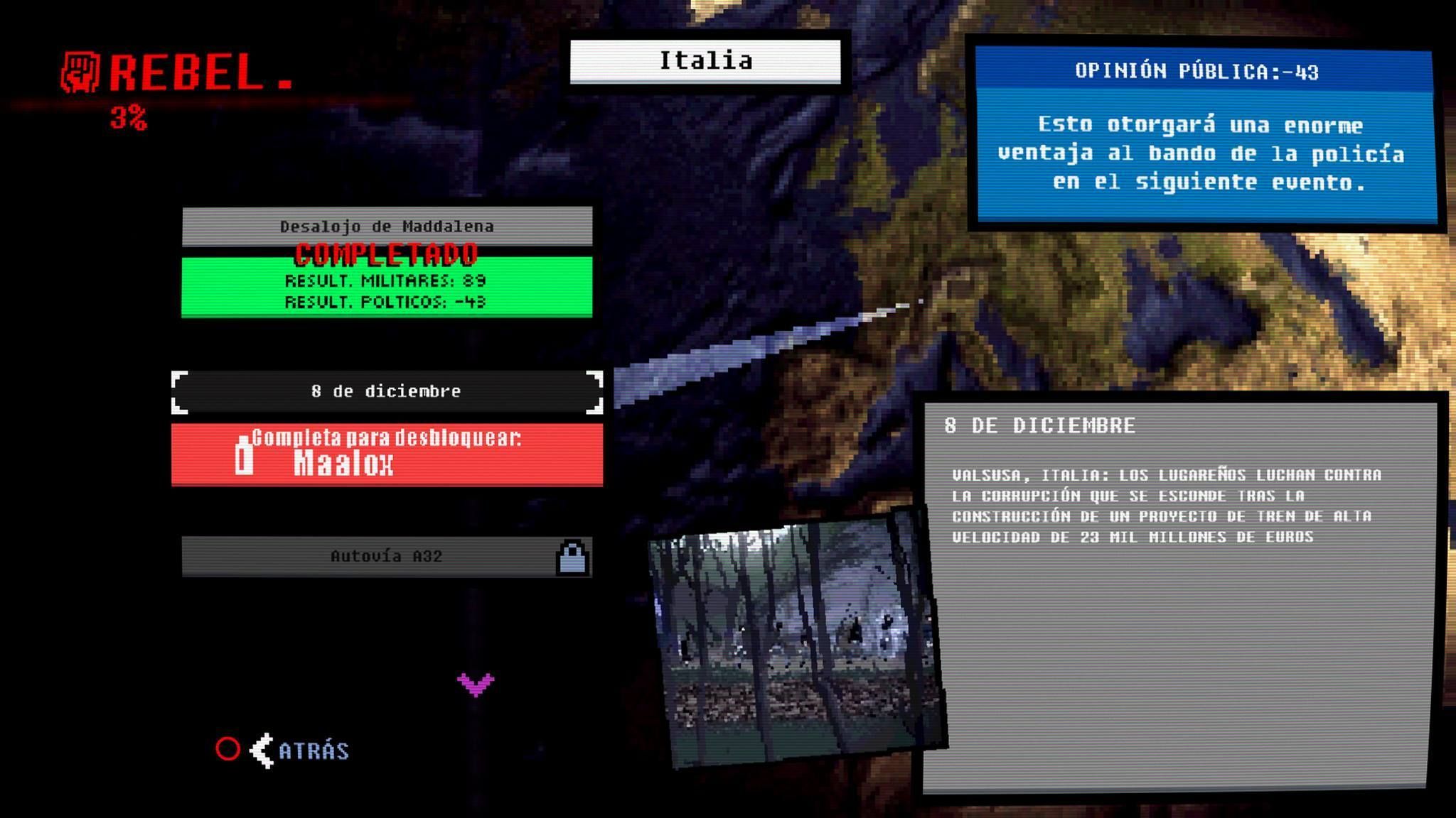 Muchas de las misiones son prácticamente iguales –defensa o captura de zonas- pero con diferente decorado, así que es inevitable que se haga algo repetitivo. Además está un poco desequilibrado –si bien puede que sea intencionado-, pues normalmente jugar como bando policial es bastante más fácil, mientras que hay eventos con los manifestantes que casi te obligan a utilizar la violencia –con la mala prensa que nos ganaremos por ello-. Y finalmente, hemos visto algún bug que nos hizo repetir una misión completada, y no todos los textos han sido traducidos.