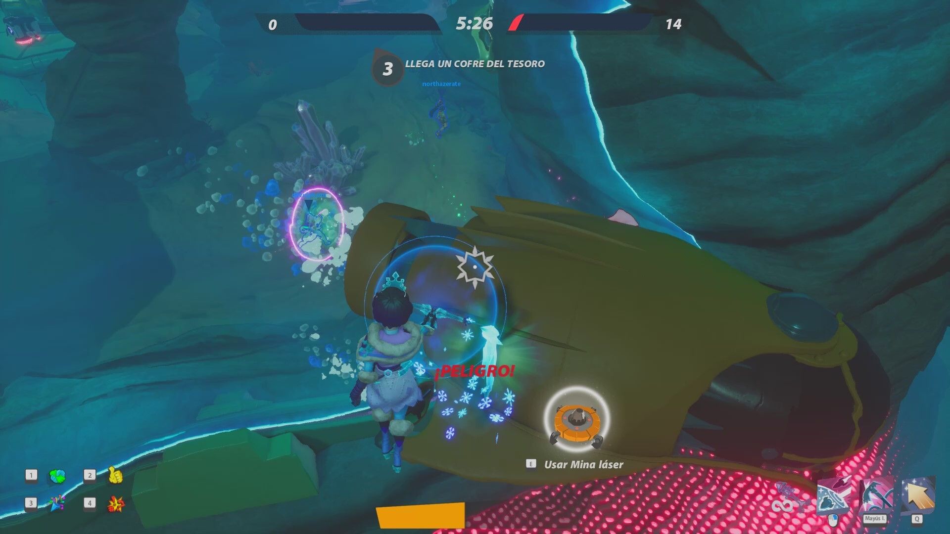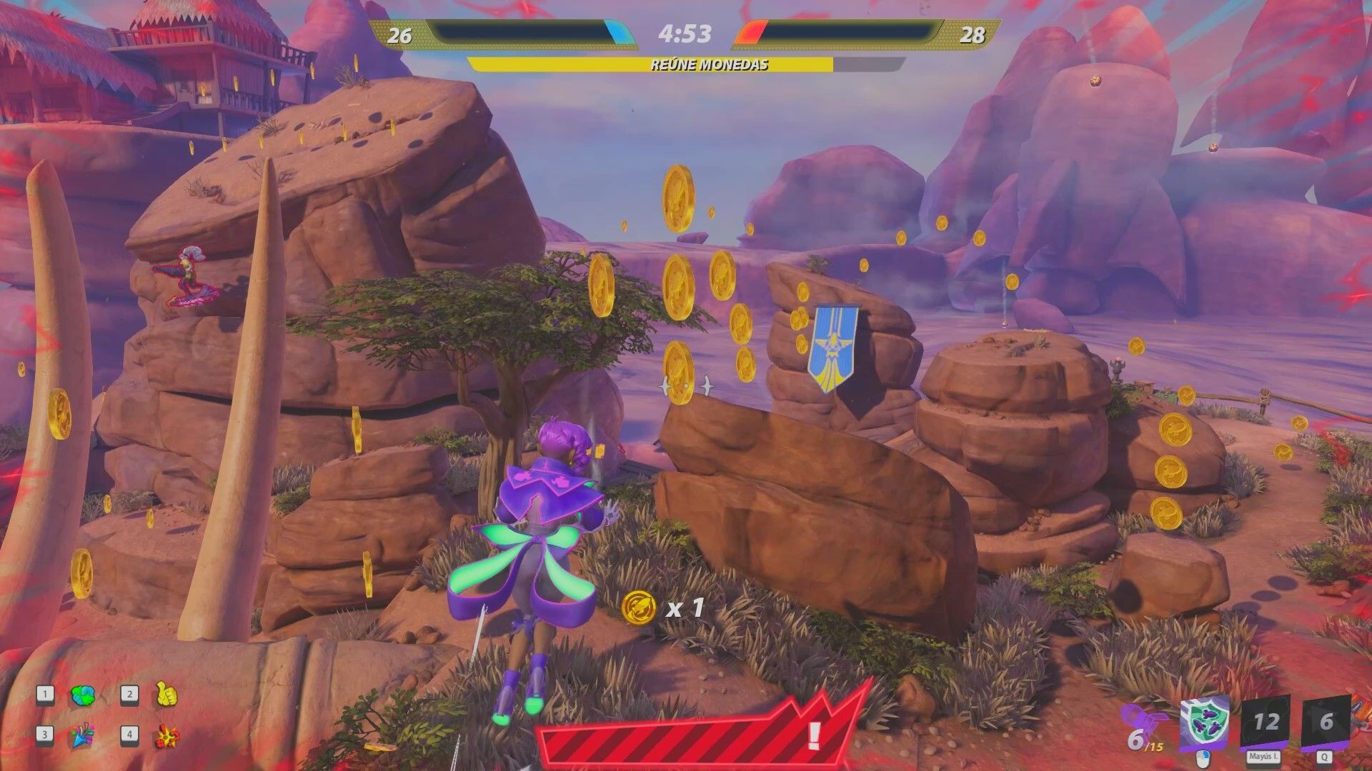 Nuestro favorito sigue siendo Caza del tesoro, quizá por la originalidad de su propuesta. Aquí aparece un cofre en medio del escenario. El equipo que lo sostenga va ganado monedas con el tiempo y, por lo tanto, quien lo lleve es el objetivo principal. Una vez se agoten las monedas del cofre todo el escenario se llena de monedas que se recogen como si de un plataformas tridimensional se tratara. Obviamente, gana el equipo que tenga más monedas antes de que se acabe el tiempo. Es simple, pero también se crean situaciones muy caldeadas. Jugándolo con el micro abierto se abren muchas opciones estratégicas, pero con desconocidos puede ser demasiado caótico, porque algunos se centran en intentar derribar al oponente dejando de lado las monedas.