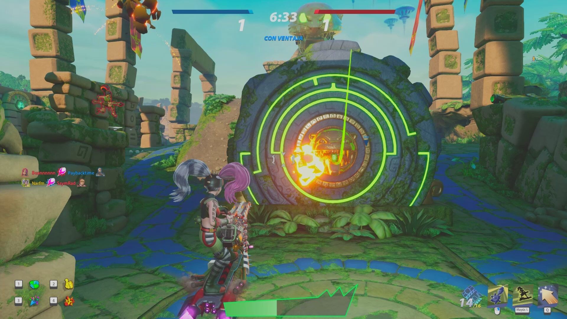 Lo que nos sigue pareciendo bastante caótico tras haber jugado más desde la preview es el modo Rocketball, que funciona a medias como un Rocket League: la pelota rebota por los escenarios de manera alocada, y podemos recogerla y pasarla a los compañeros. Quizá sea por el pasotismo de los compañeros o puede que se deba a que no todos los mapas están bien diseñados para este modo, muy diferente a los demás, pero aquí parece que se gana más por suerte que por habilidad. Tampoco nos ha convencido Guerra Robocohete, un modo horda donde el objetivo es ir acabando con oleadas de robots antes de que se acabe el tiempo: es demasiado fácil, muy repetitivo y se juega en los mismos 10 mapas que hay para el resto de los modos. Prometen que en el futuro meterán distintas dificultades y otras variantes, pero ahora mismo es lo más vago del conjunto. Eso sí, es una manera más que buena para probar las habilidades de los distintos personajes.