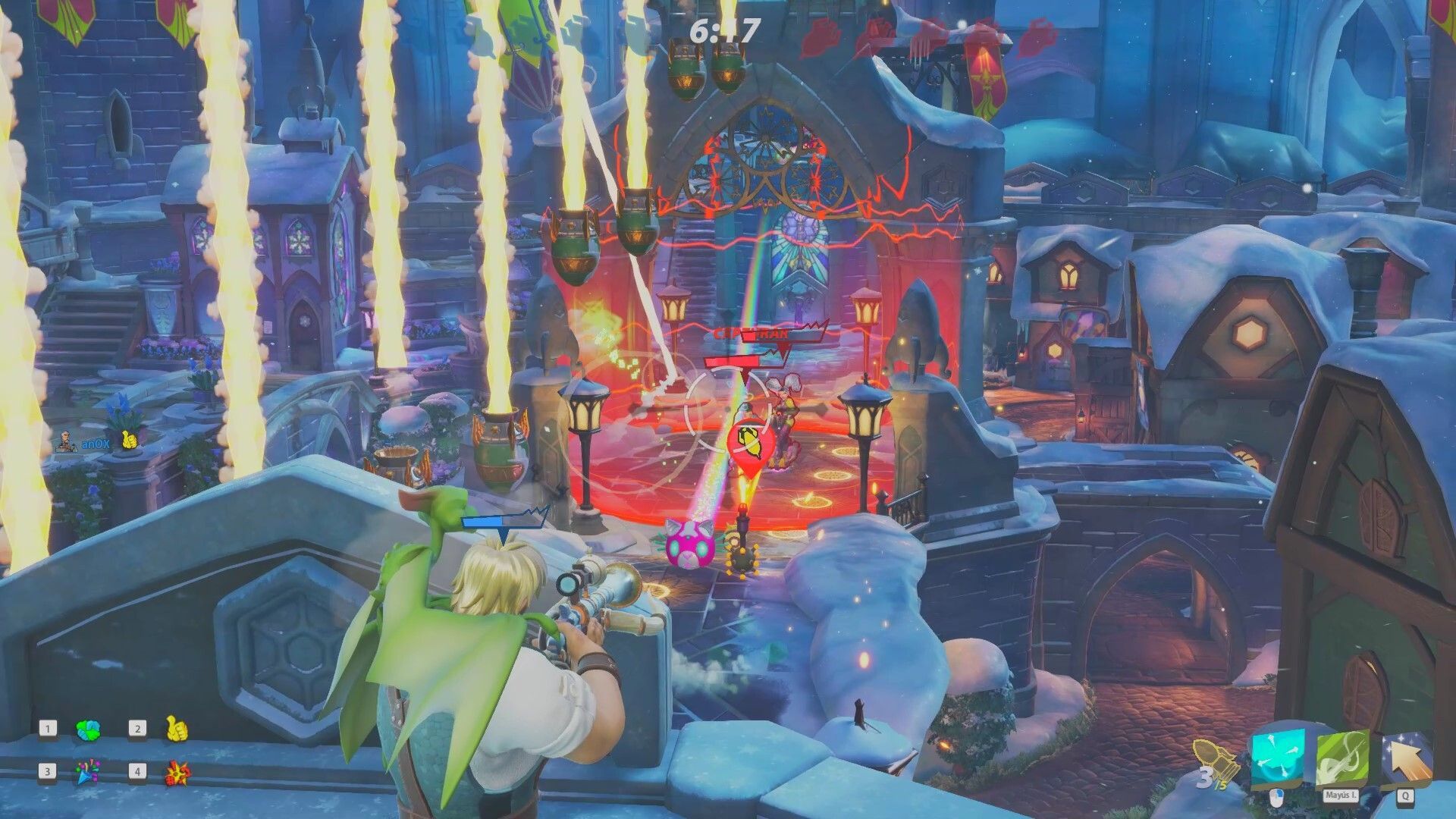 Dicho esto, en Rocket Arena se aprecia un juego cuidado, donde se ha puesto mucho esfuerzo en todos los elementos: desde la limpia y accesible interfaz a los sonidos que nos permiten identificar claramente qué tipo de cohete nos han disparado; desde esos mapas que parecen sacados de películas de animación a esos temas musicales que transmiten simpatía en cada nota. Pero lo que nos parece un trabajo encomiable son las animaciones de los personajes: hay una heroína que dispara cartas-proyectiles y gracias a sus movimientos esos ataques se sienten contundentes; hay una chica que se hace invisible y en ese momento la pantalla se envuelve de iconos y colores invertidos; y un señor lleva un pequeño dinosaurio en el hombro que interactúa con él de manera adorable.