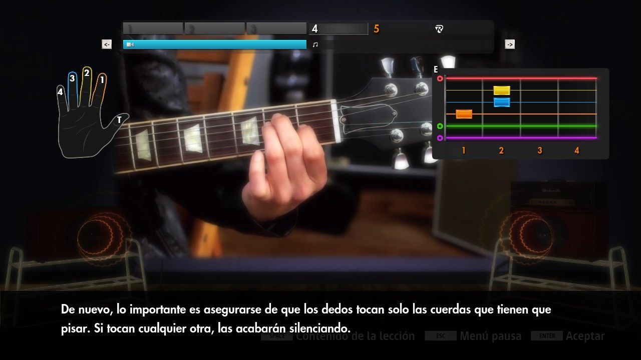 Lo consigue transformando el proceso en un acto lúdico gestionado mediante sistemas de puntuación y porcentajes, factores que ‘enganchan’ y miden tu progreso a partes iguales. Al final de cada sesión de juego, te das cuenta de que has empleado varias horas practicando con una guitarra real y no golpeando un trozo de plástico (por muy divertido que esto pudiese resultar).
