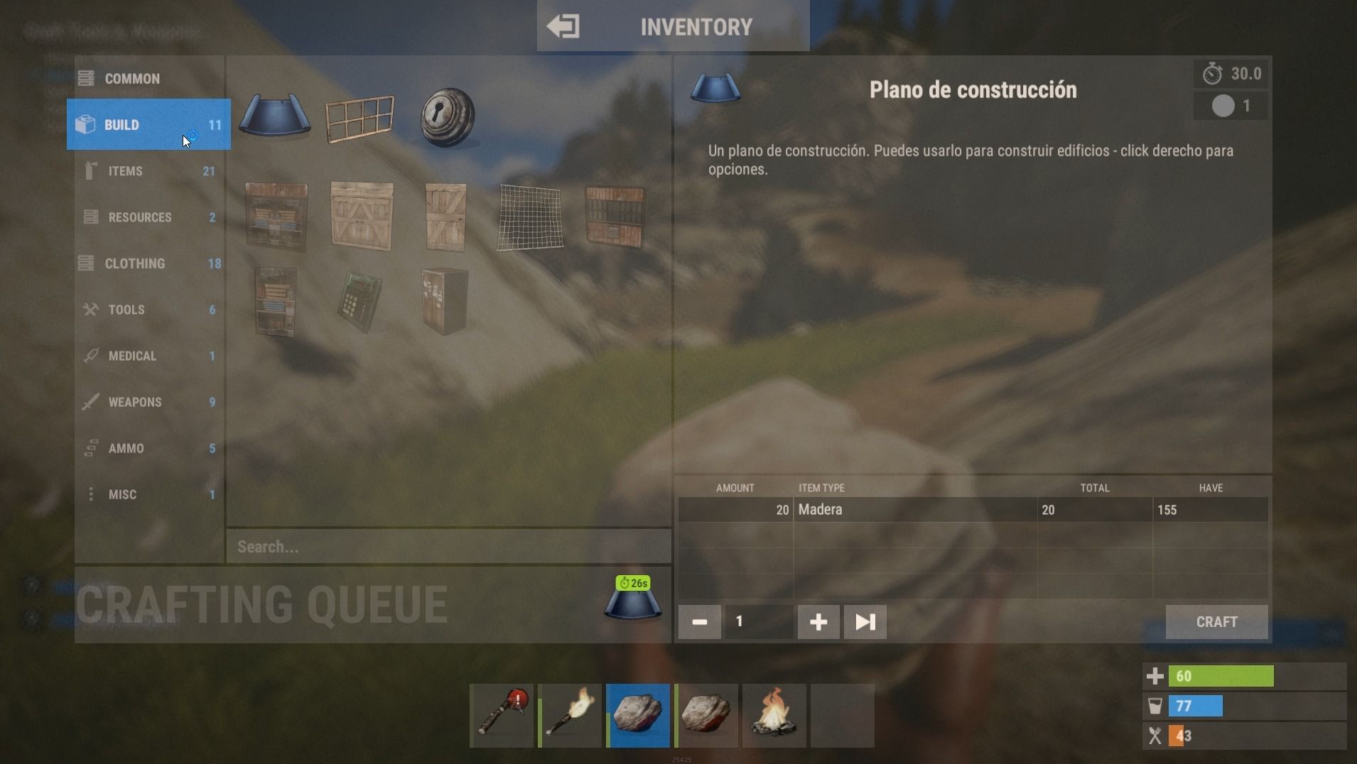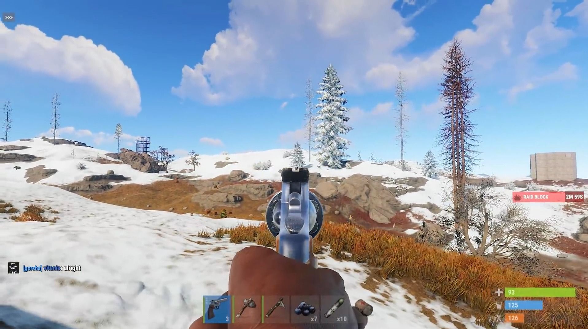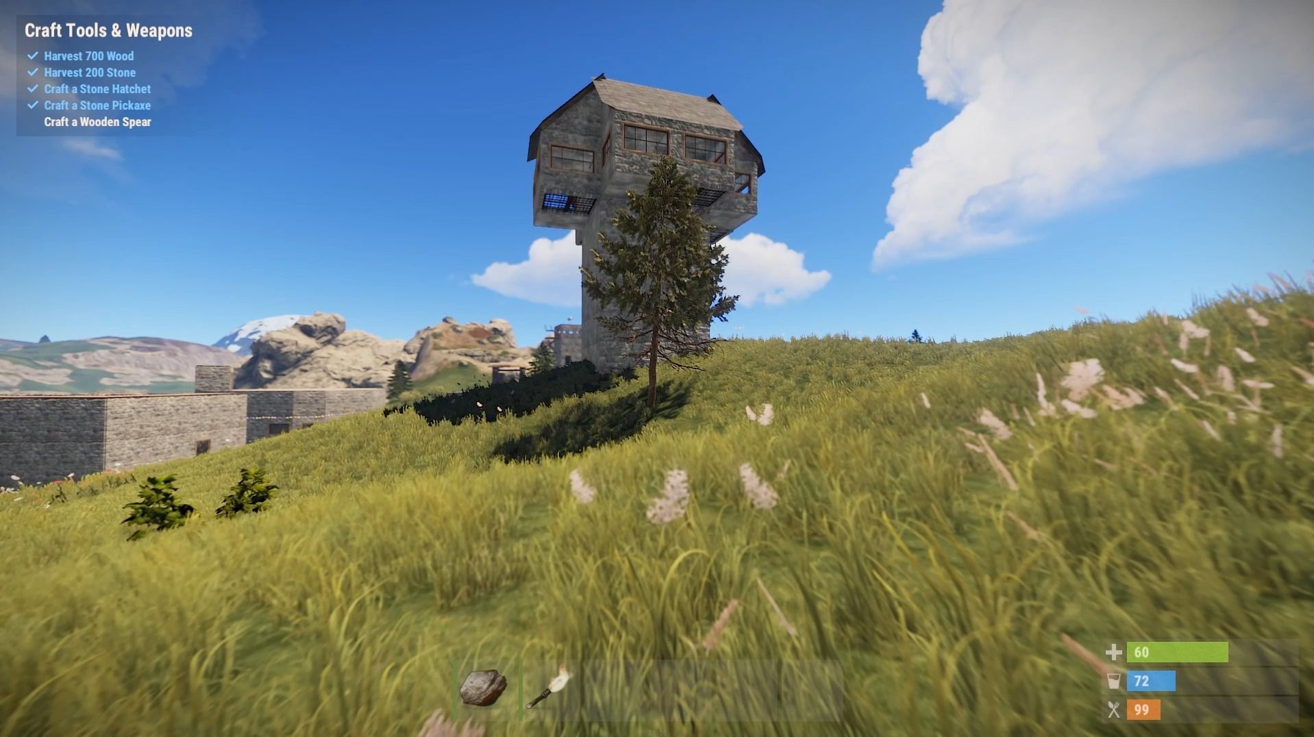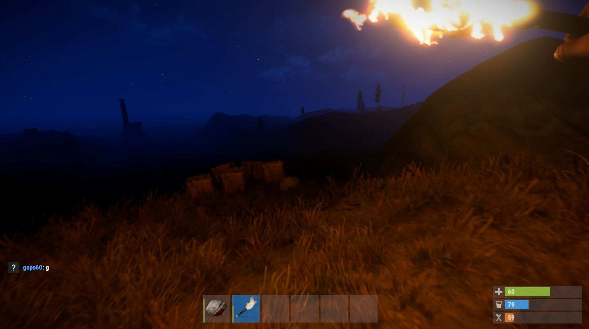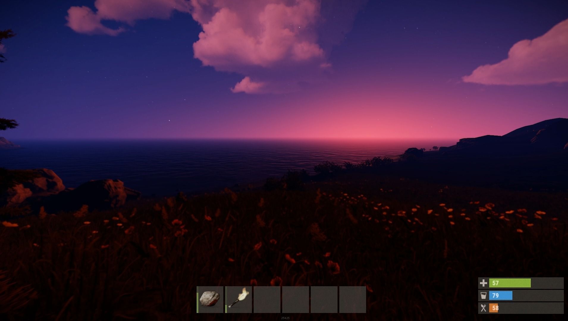 Además del crafting y la cooperación, el tercer eje sobre el que se sustenta el título es la supervivencia. En Rust será fundamental que controlemos en todo momento nuestro nivel de salud, hambre e hidratación, ya que si nos descuidamos podremos morir, dejando atrás todo lo que hemos conseguido. Para ello será fundamental cazar, conseguir agua y fabricar medicinas, elementos indispensables para seguir con vida.