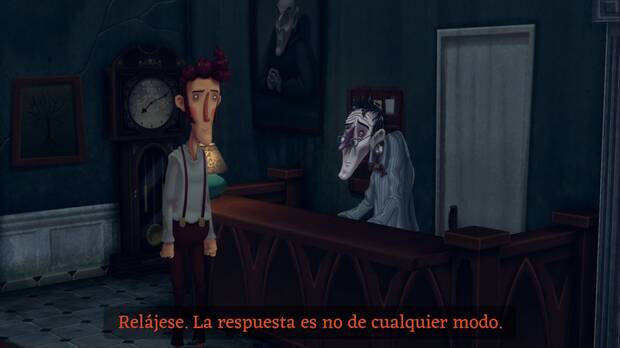 Slender Threads, como decimos, apuesta por una temática paranormal, y aunque tiene sus toquecitos de terror, es mucho más cómica que de miedo. Las imágenes que veis aquí os dan una buena idea de lo que esperar, así que no os penséis que os va a dar sustos o dejaros sin dormir por la noche. La historia está muy bien planteada, y sabe ir construyéndose poco a poco, introduciendo elementos y desvelando su trasfondo poco a poco.