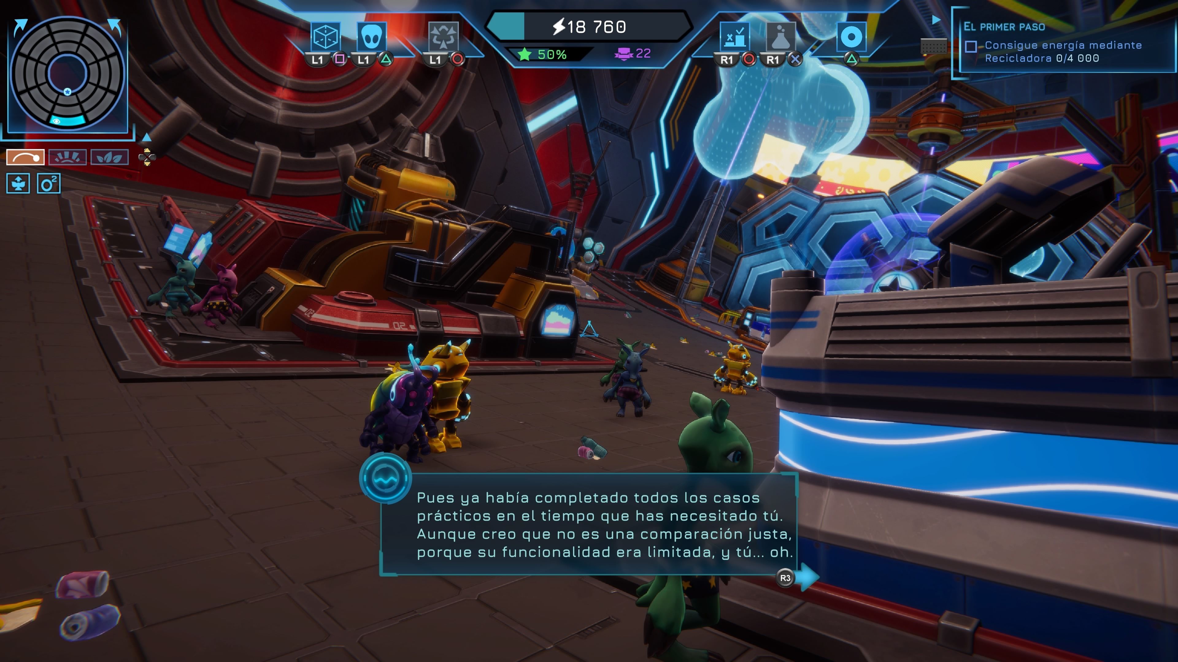 No creemos que transmita esa sensación de caos constante y de estar al borde del fracaso en cada misión o en cada minuto de otros videojuegos similares, ya que podremos hacernos con los mandos de la estación al poco tiempo de aprendernos las mecánicas básicas, pero sí reconocemos que puede llegar a ser ligeramente tedioso. La campaña principal cuenta con 10 misiones principales, pero el título compensa su corta duración -aunque esto es muy relativo a la dificultad elegida y nuestra pericia como jugadores- con un modo libre que aumenta las horas de juego. A esto hay que sumarle un modo online multijugador en el que, si bien podemos cooperar para construir una utopía de ocio y felicidad en el espacio, también nos permite devorarnos los unos a los otros usando drones y múltiples pillerías para hacer fracasar a los otros jugadores. Pillerías basadas en el combate, un ingrediente que no ha terminado de convencernos y que parece herencia directa de algunas mecánicas de otros videojuegos de Realmforge Studios. De vez en cuando tendremos amenazas de seguridad, como bichos gigantes o piratas espaciales que vienen a liarla, y que tendremos que atajar como si fuese una especie de juego de estrategia en tiempo real, seleccionando minions y mandándolos a combatir. Pese a que es una forma inteligente sobre el papel de incorporar tensión a las mecánicas y quitarle peso a la repetición de la gestión, no funciona. Nos hemos encontrado con algunos fallos o bugs a la hora de enviar y mandar a los drones de seguridad, y muchas veces hemos llegado a suspirar de resignación por lo frustrante de la situación.