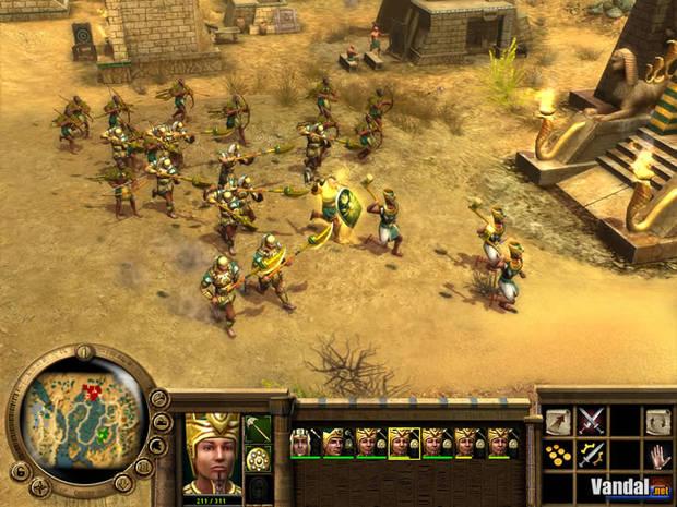 El sistema de tres facciones diferenciadas – de nuevo StarCraft como origen – aporta una notable variedad de unidades, edificios y líderes (figuras históricas con mayores atributos), aunque lo cierto es que se echa de menos alguna más, a pesar de la aparición de Libia casi al final de la campaña egipcia. Otro elemento discutible en el juego es la gran lentitud en el desarrollo. El descubrimiento de tecnologías, la obtención de nuevas armas e incluso la construcción de unidades requieren un gran tiempo y un alto número de recursos. Esto no es problemático en el modo para un jugador, donde la adaptación de este lento sistema funciona realmente bien, pero sí es bastante pesado a la hora de jugar en línea.