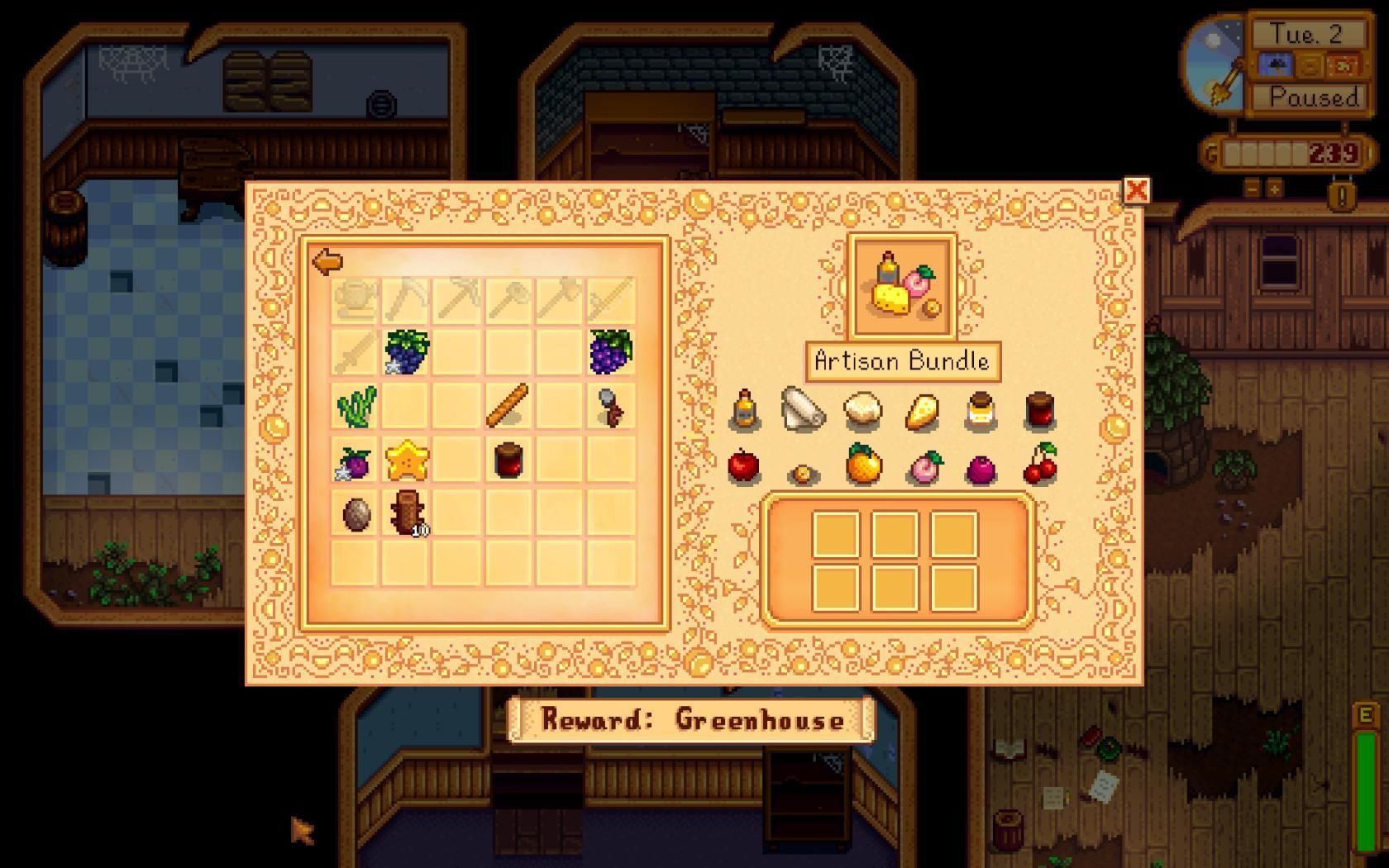 Si te conviertes en socio de Joja, el ahora abandonado Community Center pasará a ser un almacén y comprarás mejoras en el pueblo y en tu granja a golpe de talón. Pero si decides apoyar la economía local y mantenerte lejos de la corporación irás recuperando el Community Center con tu esfuerzo y vivirás una experiencia más integrada con la naturaleza que con la economía.