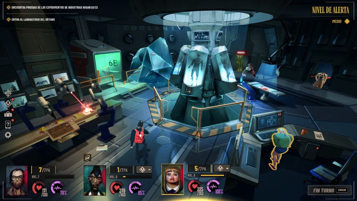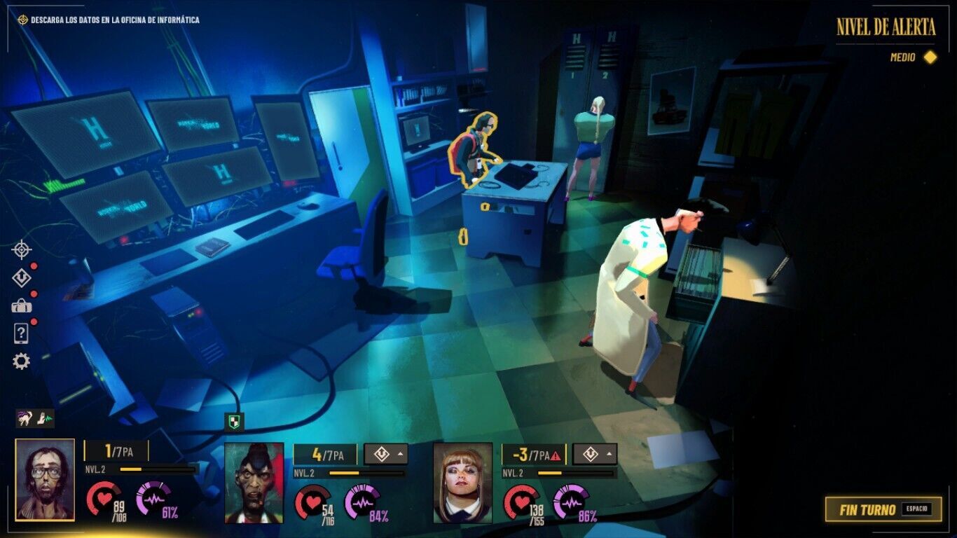 Aunque pueda parecer algo interesante, lo cierto es que a menudo provoca que el ritmo de juego se sienta mucho más repetitivo e irregular de lo que es en un principio. Esto ocurre porque cuando se gastan los puntos de acción en mitad de la investigación tenemos que poner fin al turno para que se reinicie el contador; esto multiplica el riesgo que corremos de que nos pillen y a veces da lugar a enfrentamientos con guardias y enemigos, pero cuando no pasa nada simplemente pasamos de un momento de investigación a otro sin entender muy bien por qué hemos tenido que cambiar de turno.
