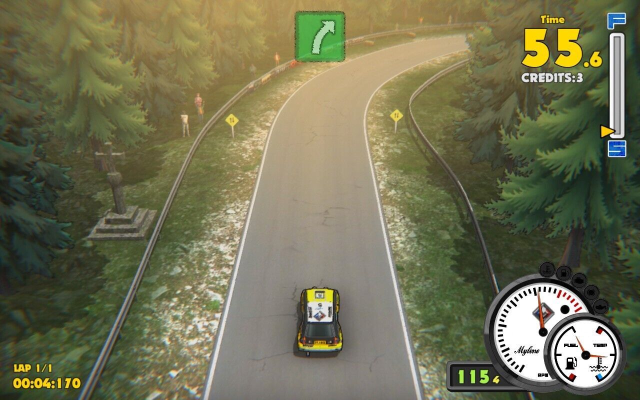 La conducción en Super Woden: Rally Edge prioriza la diversión sobre el realismo extremo, con un manejo que es bastante arcade tradicional, pero con una profundidad sorprendente. Las sensaciones de velocidad y respuesta del coche son rápidas de asimilar pero difíciles de dominar completamente, sobre todo según subimos de nivel, lo que contribuye a animarnos a pulir nuestra conducción.