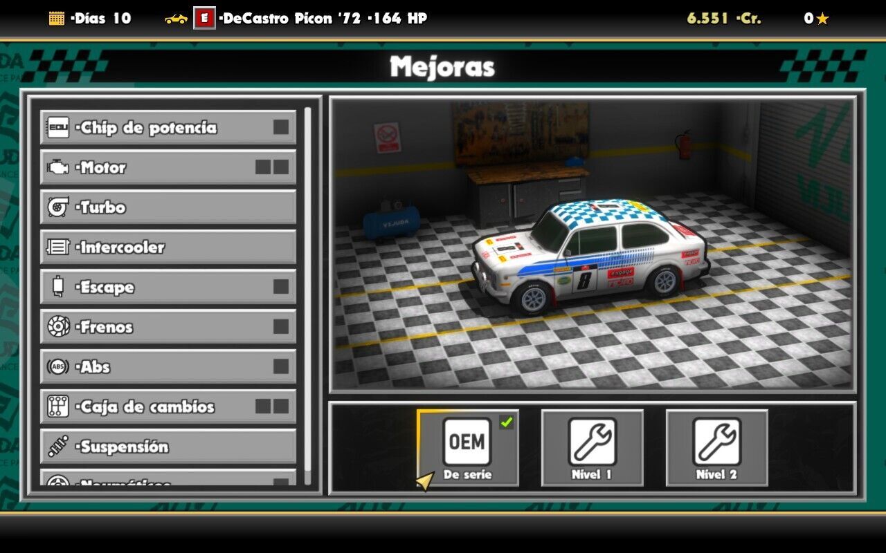 Como veis en las imágenes, se trata de un título que nos invita a competir desde una perspectiva aérea, pero lejos de la sencillez de los clásicos, el corazón de Super Woden: Rally Edge reside en su sistema de progresión: compras coches, mejoras piezas, compites en diferentes etapas y subes en la clasificación global.