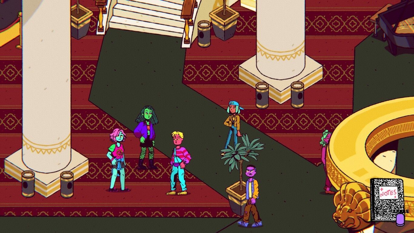Aunque lo hayamos dejado para el final, una de las principales fortalezas de The Big Con es su dirección artística inspirada sin descaro en las series animadas y las estéticas de los años 90. Para quienes hemos nacido en esa década y hemos estado reviviendo las nostalgias ochenteras una y otra vez, la propuesta artística de este juego es todo un soplo de aire fresco; obviamente no es el único título que se inspira en aquella época, pero sí es uno de los que mejor consigue transmitir esa fantasía noventera que vive romantizada en nuestra memoria.