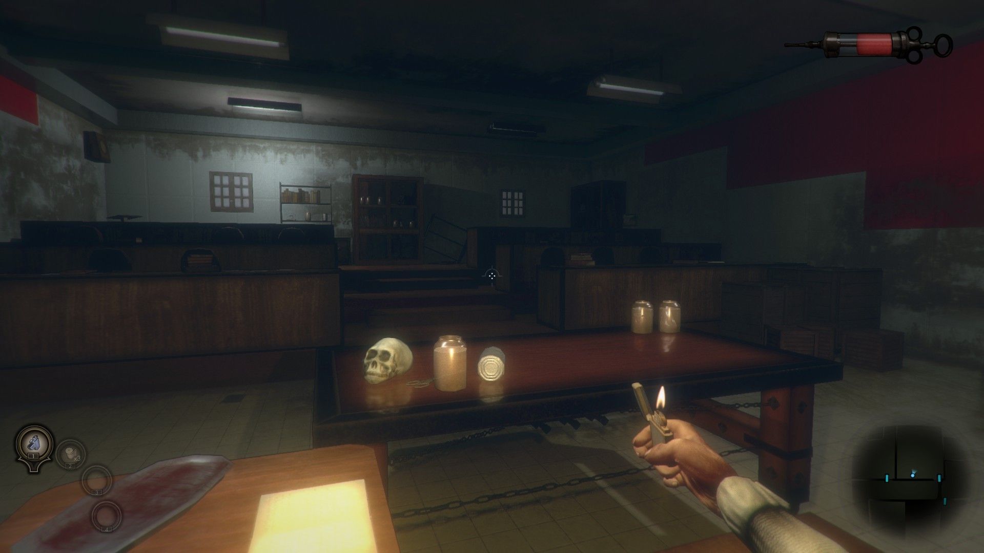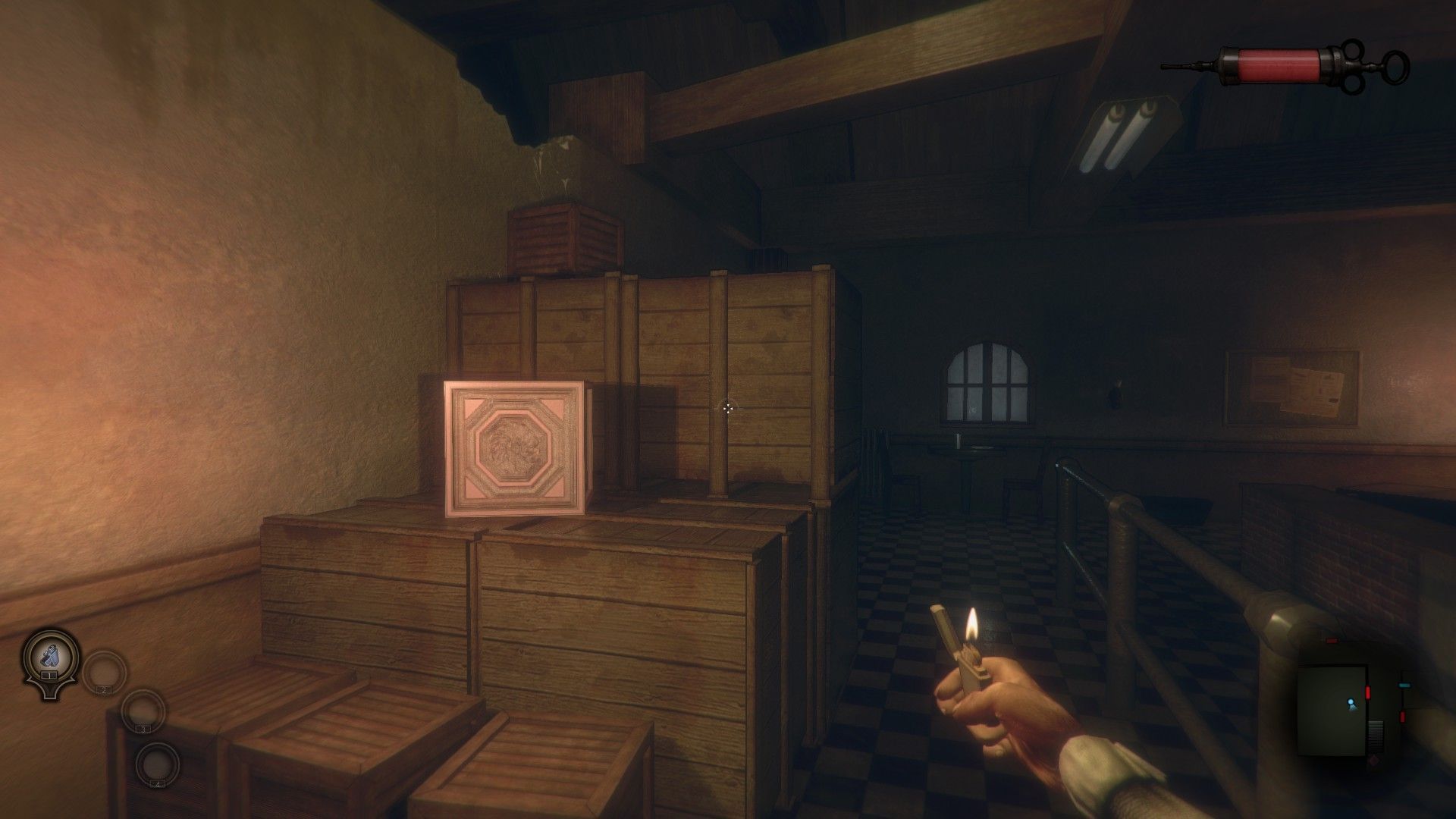 El desarrollo general es por tanto muy clásico: visitar todas las habitaciones disponibles, recoger utensilios y encontrar la forma de abrir las puertas bloqueadas, sea por una ruta secreta –los conductos del aire-, la obtención de una llave u objeto especial, pongamos una máscara de gas que nos permita entrar en una sala tóxica. La virtud y defecto de The Crow’s Eye es que arriesga muy poco y, sin cometer grandes fallos, tampoco hace nada extraordinario dentro de la temática.