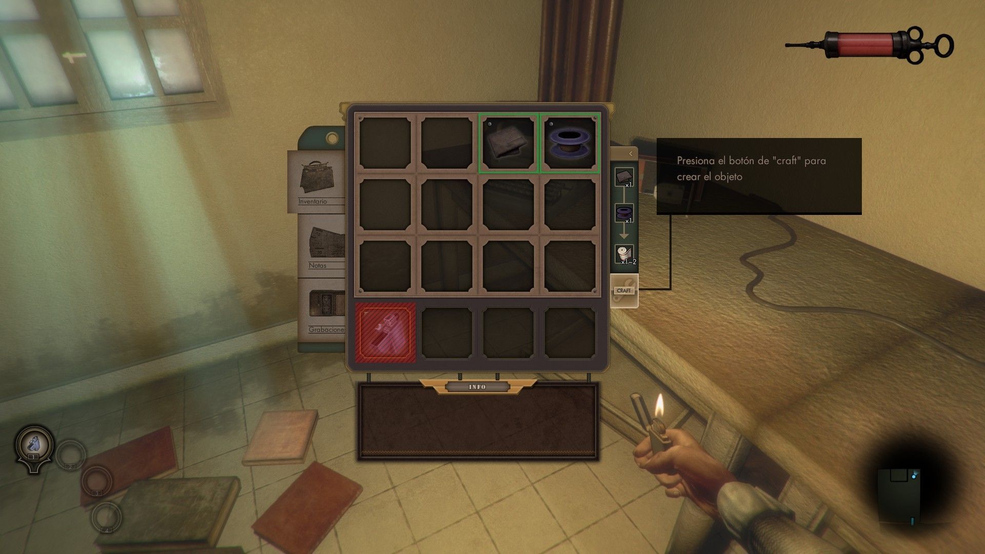 Mencionar que –¿quién lo hubiera imaginado?- los escenarios suelen estar mal iluminados y necesitas la luz de un encendedor. En este caso y a diferencia de títulos que utilizan cerillas o una linterna a pilas, la lumbre no se consume, lo que significa que no debes preocuparte por conseguir más mecheros por el uso. Con los recursos necesarios podrás dibujar un mapa de caza nueva zona, evitando así la desorientación.