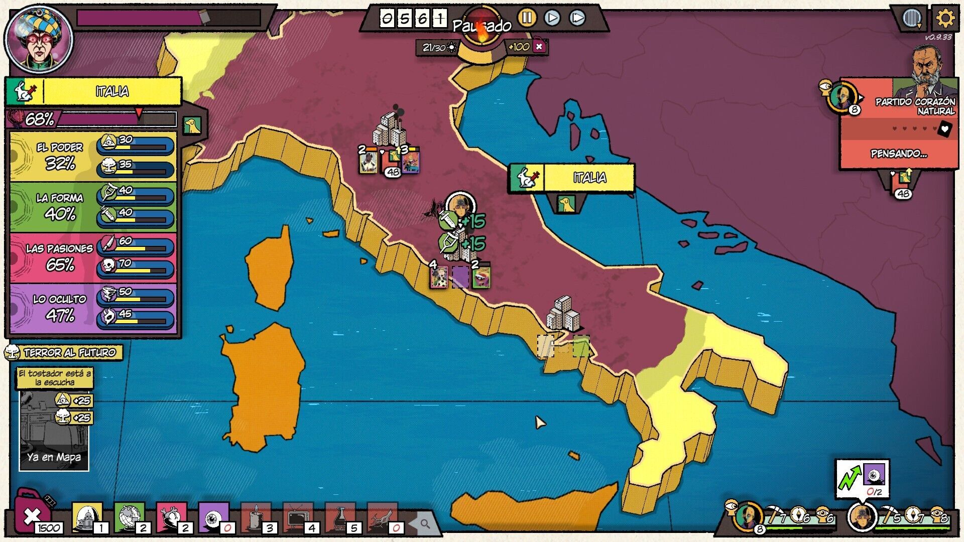 En las misiones de las campañas primero hay que asignar cada uno de los mensajes que se quiere difundir a una región, teniendo en cuenta si hay alguna línea de miedos que esté bloqueada, y después plantar en el escenario la semilla del miedo a partir de la cual empezará a crecer el poder del jugador extendiéndose como una mancha por el mapa, a medida que las cartas vayan ejerciendo su efecto y, cuando el miedo está ya implantado en toda la región, poder emitir el mensaje y que la población lo apoye.