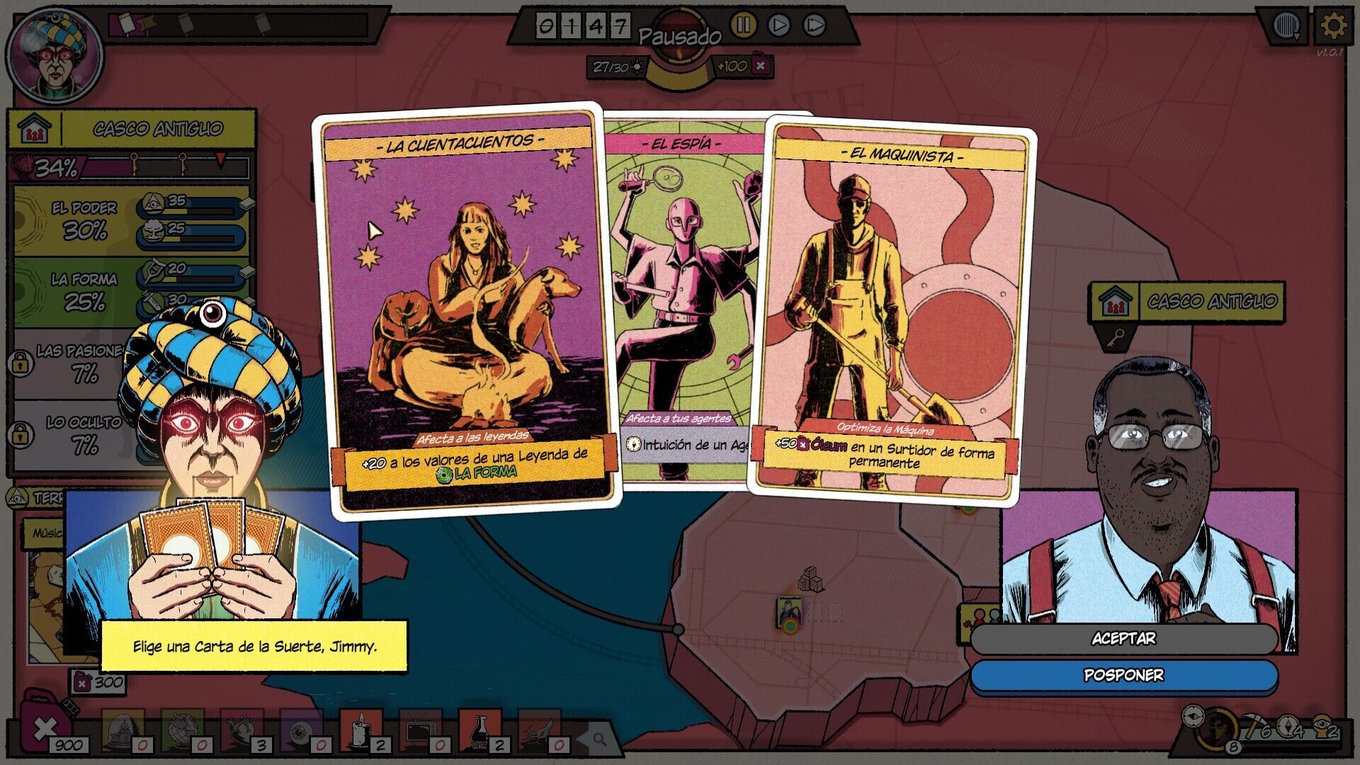Después ya hay que explorar las ciudades de cada territorio e implantar en ellas en forma de cartas que corresponden a mitos, leyendas urbanas y teorías conspiranóicas populares. Cada carta representa una leyenda y tiene al menos dos elementos que corresponden a las cuatro líneas del miedo; por ejemplo, la carta Máquina del Clima sube el miedo al futuro y a la muerte y Secuestros exprés potencia el miedo a la conspiración y la violencia. Entender estos conceptos es más sencillo de lo que parece inicialmente gracias a los códigos de colores y los símbolos de cada carta, pero es una jugabilidad tan específica que el tutorial resulta imprescindible.