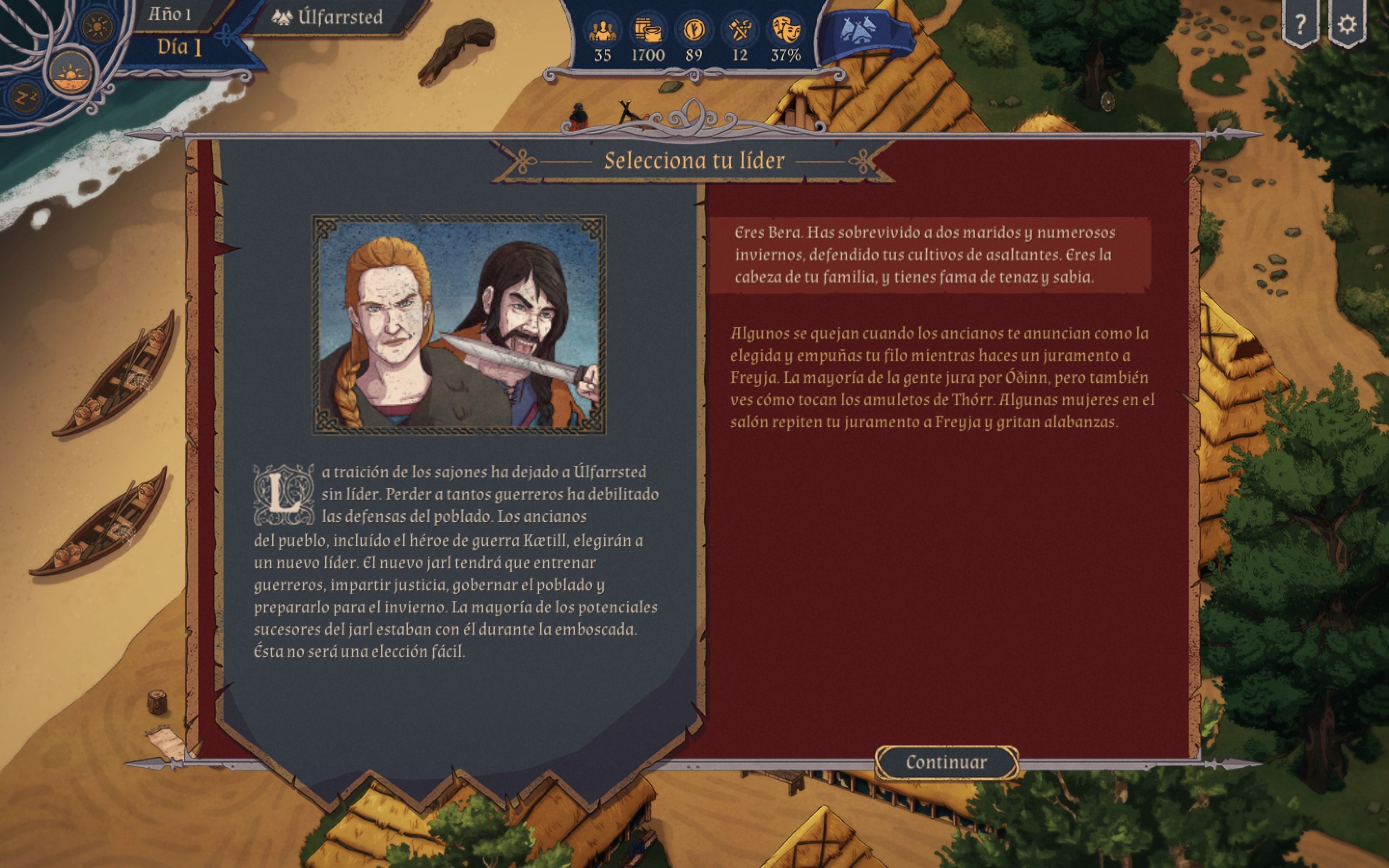The Great Whale Road nos permitirá elegir entre dos líderes para nuestra particular historia de venganza y resurgimiento, Bera y Floki. Ambos presentan un trasfondo único, unas motivaciones intrínsecas a su naturaleza -Bera, por ejemplo, es una mujer con un pasado trágico que la obligó a convertirse en una superviviente- y una serie de cualidades jugables distintas que marcarán nuestro avance y desarrollo en el videojuego. Los dos personajes -así como aquellos héroes que irán apareciendo en nuestras aventuras- están muy bien escritos, y supondrán a veces una motivación de cara al jugador para seguir avanzando.