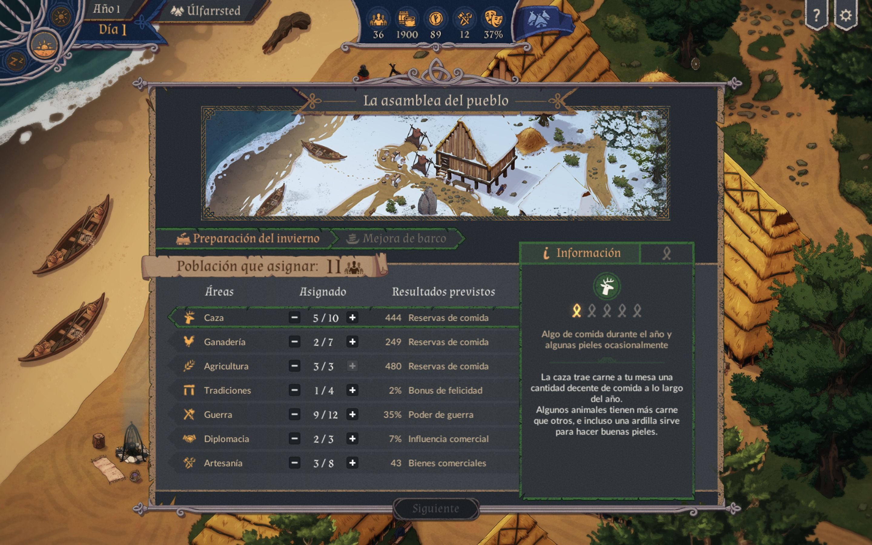 Será la climatología y nuestra planificación la que nos marcarán el avance en el juego. Es decir, mientras el crudo invierno se cierne sobre nosotros, tendremos que planificar y administrar nuestros recursos, realizando planes y salvaguardando la seguridad y el alimento a nuestros habitantes, mientras que durante el verano, tendremos que ir a comerciar, explorar y establecer vínculos con otros poblados para asegurarnos provisiones en los momentos posteriores. Además, se nos invitará a asignar distintas personas a actividades tan variadas como la caza, la agricultura, la artesanía o incluso la diplomacia -entre otras-, permitiéndonos gestionar casi todos los aspectos de nuestro poblado de forma pormenorizada.