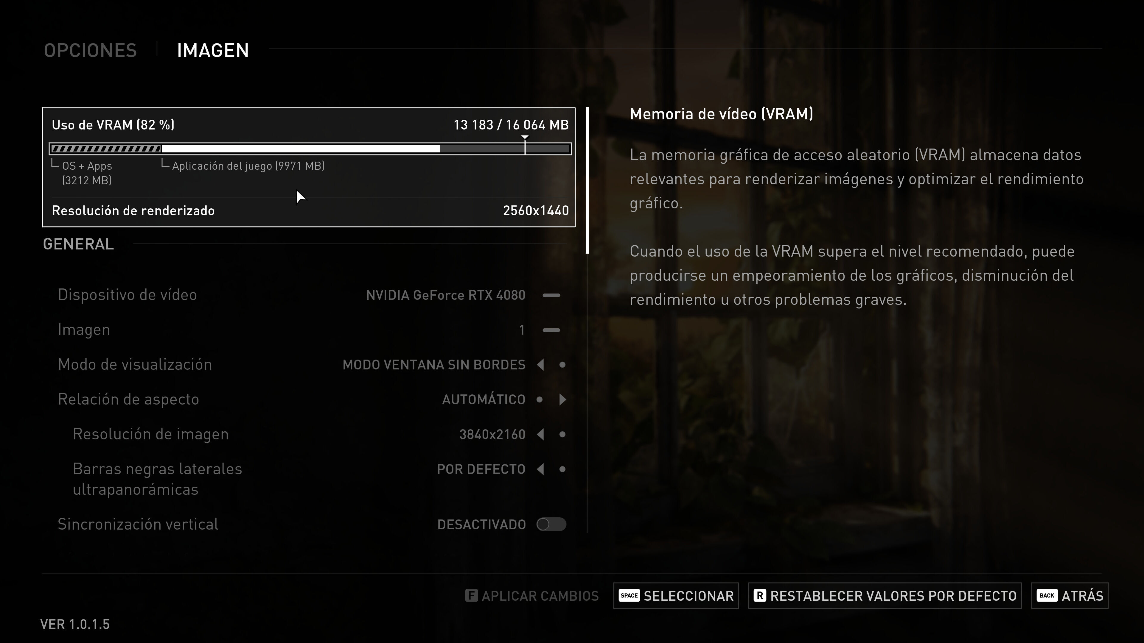 Aquí tenemos un montón de opciones tanto en los controles como en el sonido y, lo que es más importante, un buen puñado de parámetros gráficos que nos permiten personalizar la experiencia. En esta ocasión Iron Galaxy (encargados de esta versión) vuelve a ofrecernos un sistema que nos indica la cantidad de VRAM que estamos consumiendo de nuestra GPU con cada opción y además también nos detallan cuánto afecta al rendimiento o a la capacidad de nuestro procesador, gráfica o memoria, algo muy útil, aunque nos hubiera gustado ver algún banco de pruebas externo o independiente como vimos en Returnal, ya que nos facilita bastante las cosas para retocar características y hacer pequeñas pruebas cómodas antes de entrar a jugar. Además también echamos en falta la opción de jugar a Pantalla Completa y no en modo ventana con o sin bordes, un error que esperemos solucionen con algún parche y tampoco podemos ajustar con precisión la tasa de FPS máximas, ofreciendo el port simplemente múltiplos de 10, es decir, que si tenemos un monitor de 144 Hz deberemos de optar por 140 FPS o por 150 FPS no por 144 FPS exactos.