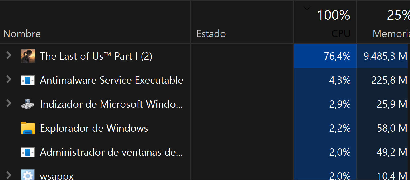 De entrada, al empezar por primera vez a jugar nos encontramos con la habitual hoy día compilación de shaders que, expresado de forma sencilla, digamos que prepara al juego para ejecutarse en nuestro equipo, algo que en la mayoría de los casos tarda un par de minutos la primera vez que lo arrancamos (o tras una actualización importante) pero que, en el caso de The Last of Us Parte 1 en PC ha llevado más tiempo del que debería, tomándonos 45 minutos el realizar este proceso. De hecho algo que nos sorprendió es que consumía el 75 % de los recursos de nuestro procesador, un 19-11900K que no es para nada una CPU vieja ni de gama baja, recordándonos a un fallo muy similar que ya vivimos en la versión para PC de Horizon Zero Dawn.