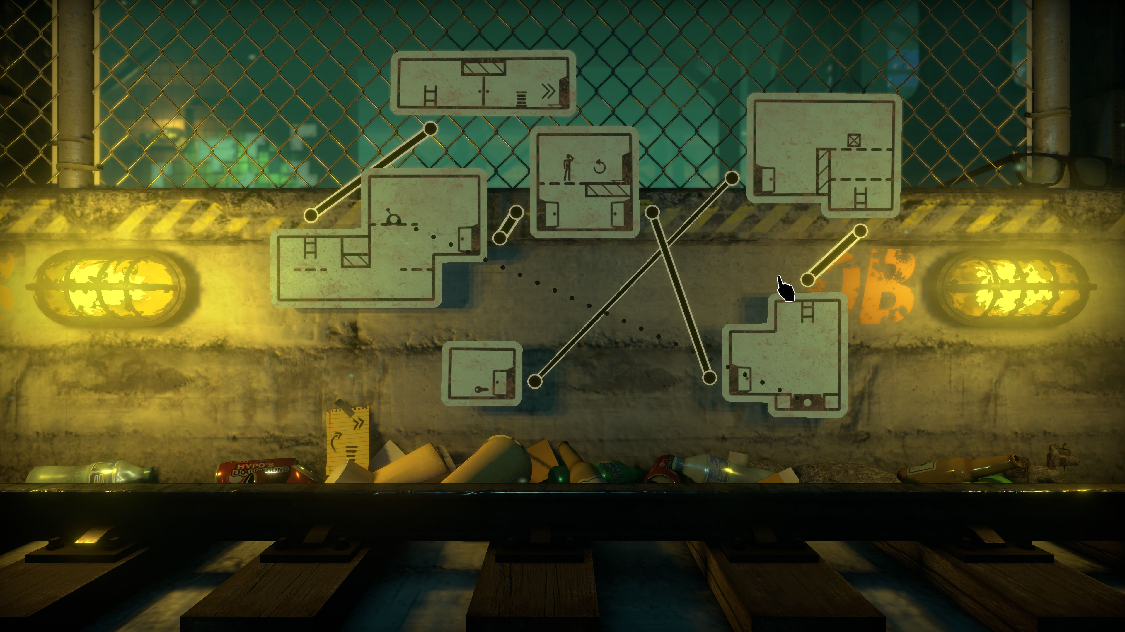 Uno de los puntos fuertes de The Pedestrian es su puesta en escena. En él recorremos una gran urbe norteamericana en un plano secuencia, yendo desde las alcantarillas hasta los carteles de los edificios, pasando por el metro y, por supuesto, las señales de tráfico. Es un acercamiento audiovisual tan sencillo como efectivo, que complementa la jugabilidad con muchísimo acierto. Aun siendo algo meramente estético, las transiciones entre zonas, o cómo aprovecha el entorno para justificar los puzles es digno de elogio. Para ilustrar esto, podemos mencionar algunos puzles en los que no podemos mover las partes que lo componen, y el escenario acompaña la mecánica atornillando las señales o clavando los papeles a un corcho con chinchetas. Sin pequeños detalles que nos han gustado mucho.