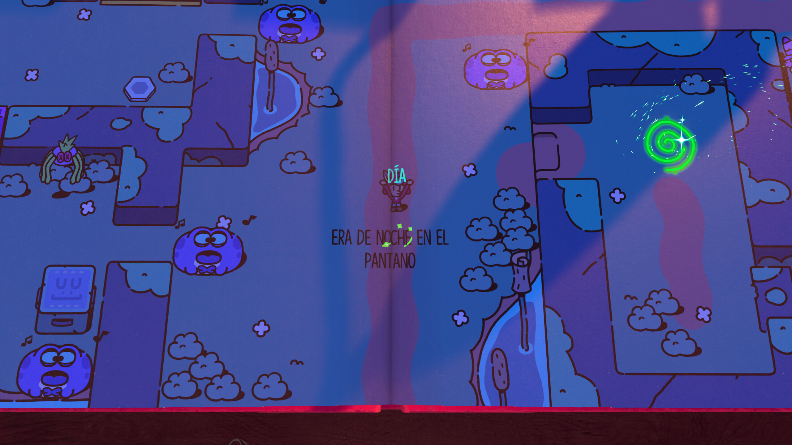 Sin embargo, ambas están interconectadas, y esa es la gracia (y tiene mucha) de la obra de All Possible Futures. Dentro del cuento avanzamos combatiendo a enemigos variados con movimientos similares a los de Link, realizando tareas como encontrar cerditos por una ciudad, superando secciones de plataformas bidimensionales muy sencillitas, y resolviendo puzles que nos obligan a interactuar con el relato de diferentes maneras. Describirlas todas sería chafar una parte fundamental de la experiencia, el descubrimiento de esas interacciones, pero basta decir que son se basan en cambiar unas palabras por otras para modificar materiales o comportamientos de un objeto, y en salir del relato, a través de los portales repartidos por sus páginas para juguetear con el libro, pasando sus hojas, inclinándolas y otras tantas acciones para influir en el mundo del cuento. Original, ingenioso y divertido.