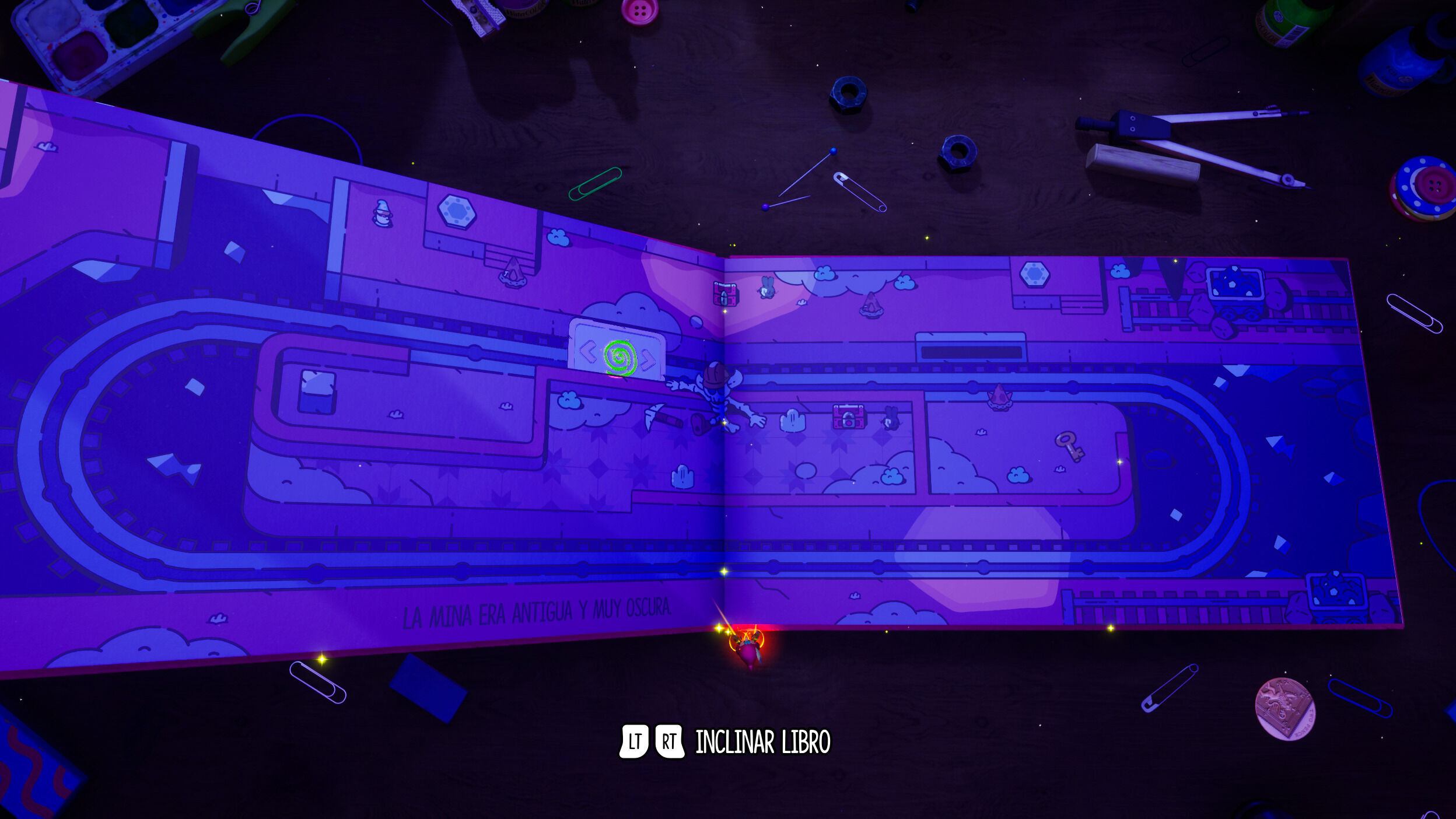 Por momentos nos ha recordado a It Takes Two por cómo trata constantemente de introducir nuevas ideas y mecánicas, aunque aquí los elementos centrales de la dinámica de juego están más fijados. Es algo nuevo constantemente, incluyendo un buen puñado de minijuegos que divertirán a los más pequeños y golpearán en la nostalgia de los más crecidos. Pero quizá hayáis identificado en los anteriores párrafos el principal punto negro de The Plucky Squire: la sencillez. Excepto por algún puzle que nos puede dejar pensado algún minuto, pero poco más, a lo largo de las siete u ocho horas que podéis tardar en completar la aventura no encontraréis reto alguno. El combate, funcional pero falto de profundidad y a veces un tanto caótico, no evoluciona demasiado. Las plataformas, algo menos precisas de lo que nos gustaría en las secciones 3D, son de todo menos desafiantes. Los minijuegos dinamizan, pero son simples. Hay un par de secciones de sigilo que no entendemos qué hacen aquí, aunque al menos son breves y fáciles.