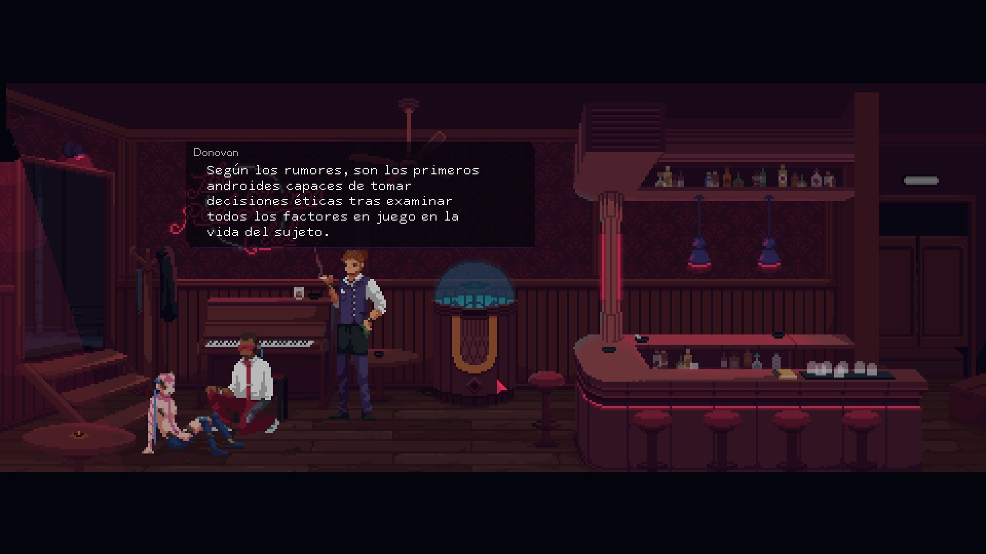 Pero no es tan simple como seguir una historia a lo largo de la cual nos sueltan frases más o menos profundas. Deconstructeam le añade unos cuantos ingredientes especiados que le dan un sabor diferente y lleno de vida. El club al que hace referencia el título es clave. En él trabaja Donovan, que lleva al máximo el concepto de que los camareros saben interpretar el estado de ánimo de sus clientes y elabora unos cócteles específicos para las emociones que detecta en el alma del parroquiano. Según la que elija, la conversación tendrá un recorrido u otro, y a veces deberá cambiar de bebida en mitad del diálogo para conseguir averiguar lo que le interesa.