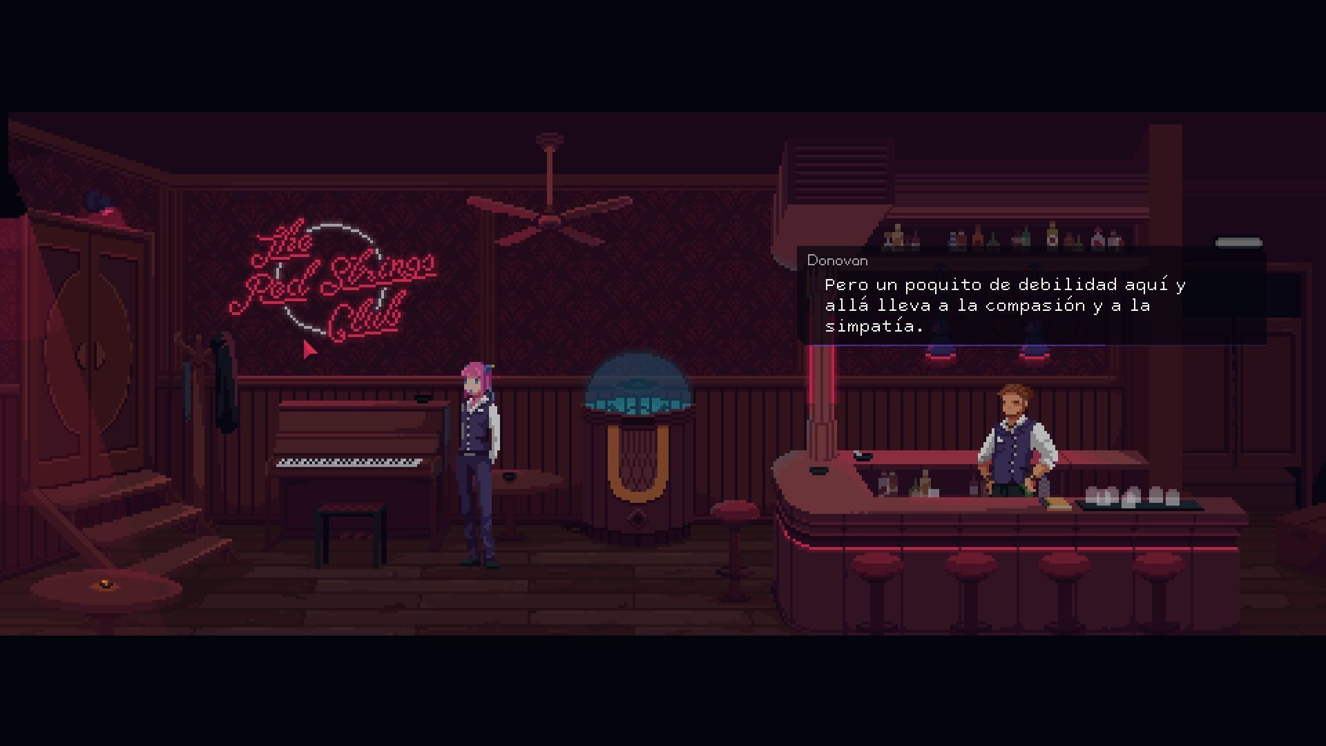 Si alguna vez alguien duda de la necesidad de que haya estudios pequeños que abran nuevos (y normalmente arriesgados) caminos le remitiremos a Deconstructeam, un pequeñísimo estudio valenciano compuesto por tres personas que obtuvo el respaldo de la crítica y los jugadores con su anterior juego, Gods will be watching y ahora acaba de lanzar otro juego, The Red Strings Club con gran personalidad que reúne unos magníficos gráficos pixel art, una banda sonora variada y buena, un universo de juego trabajado y una historia interesante y bien narrada que, para mayor dificultad, tiene múltiples posibilidades de desarrollarse.