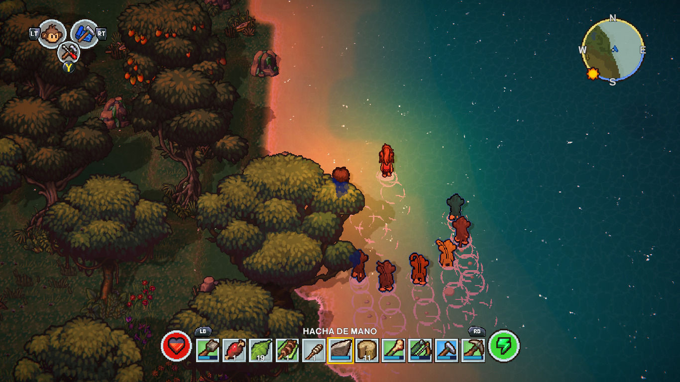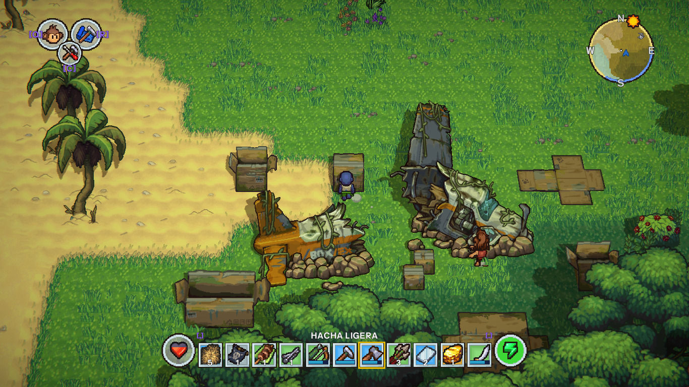 Por eso, aunque al principio parezca que hay pocas cosas que hacer, a poco que rascamos en la superficie descubrimos que eso no es cierto. Si en The Escapists el objetivo era fugarnos de la cárcel, en The Survivalists no es sólo sobrevivir en mitad del océano, sino también abandonar el archipiélago en el que hemos encallado. Y eso no lo conseguiremos con la balsa, sino explorando cada rincón de cada isla para desbloquear el camino de vuelta a casa.