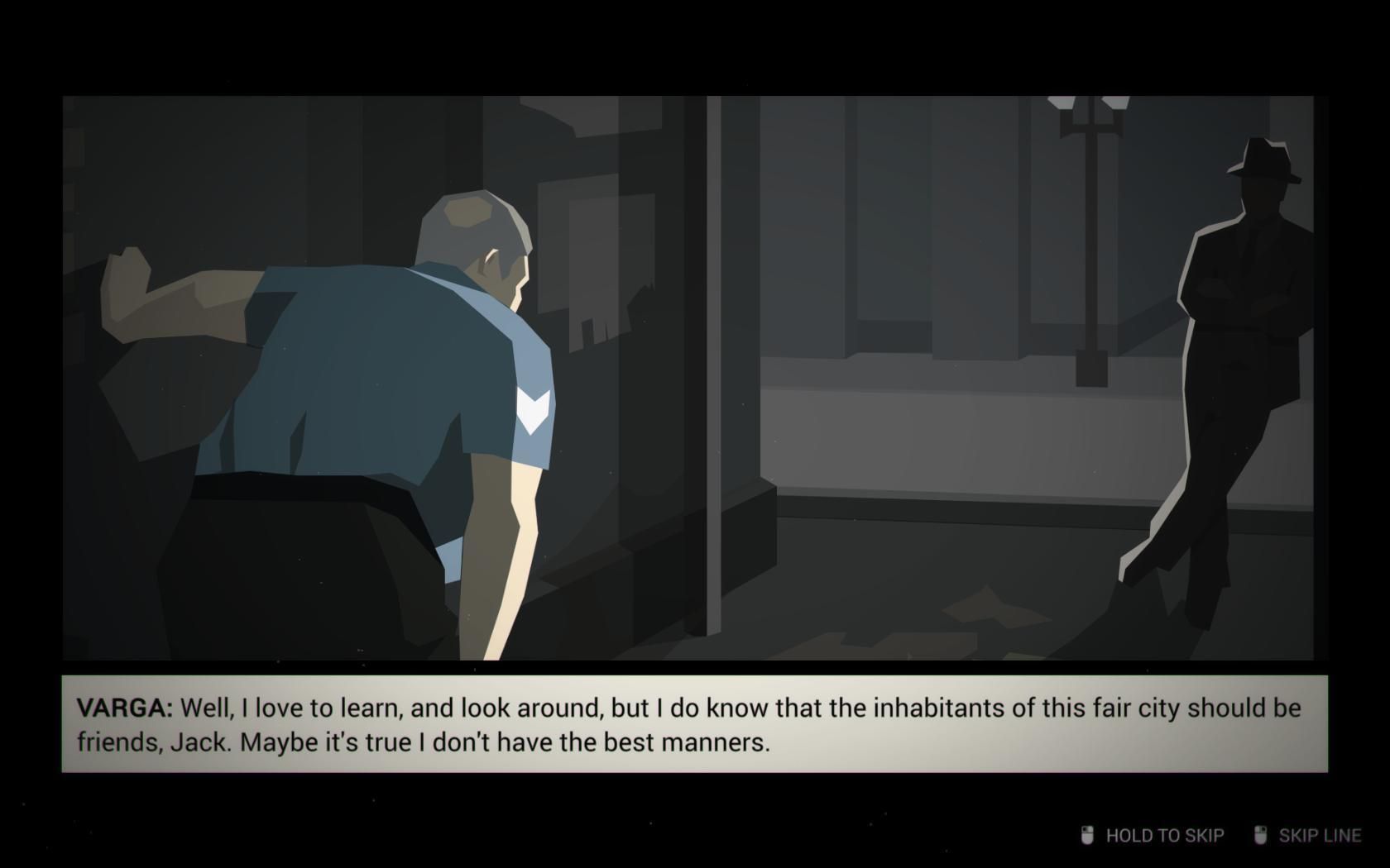 Esta historia se va entretejiendo con lo que haces en el día a día mediante escenas con un estilo de cómic subtituladas, con un estilo low poly en el que la figura de Jack aparece de espaldas y los personajes no tienen cara, únicamente se ve algún rasgo físico destacado. Los personajes -incluso los que tienen un pequeño papel- tienen dobleces y la traición puede esperarte cualquier día.