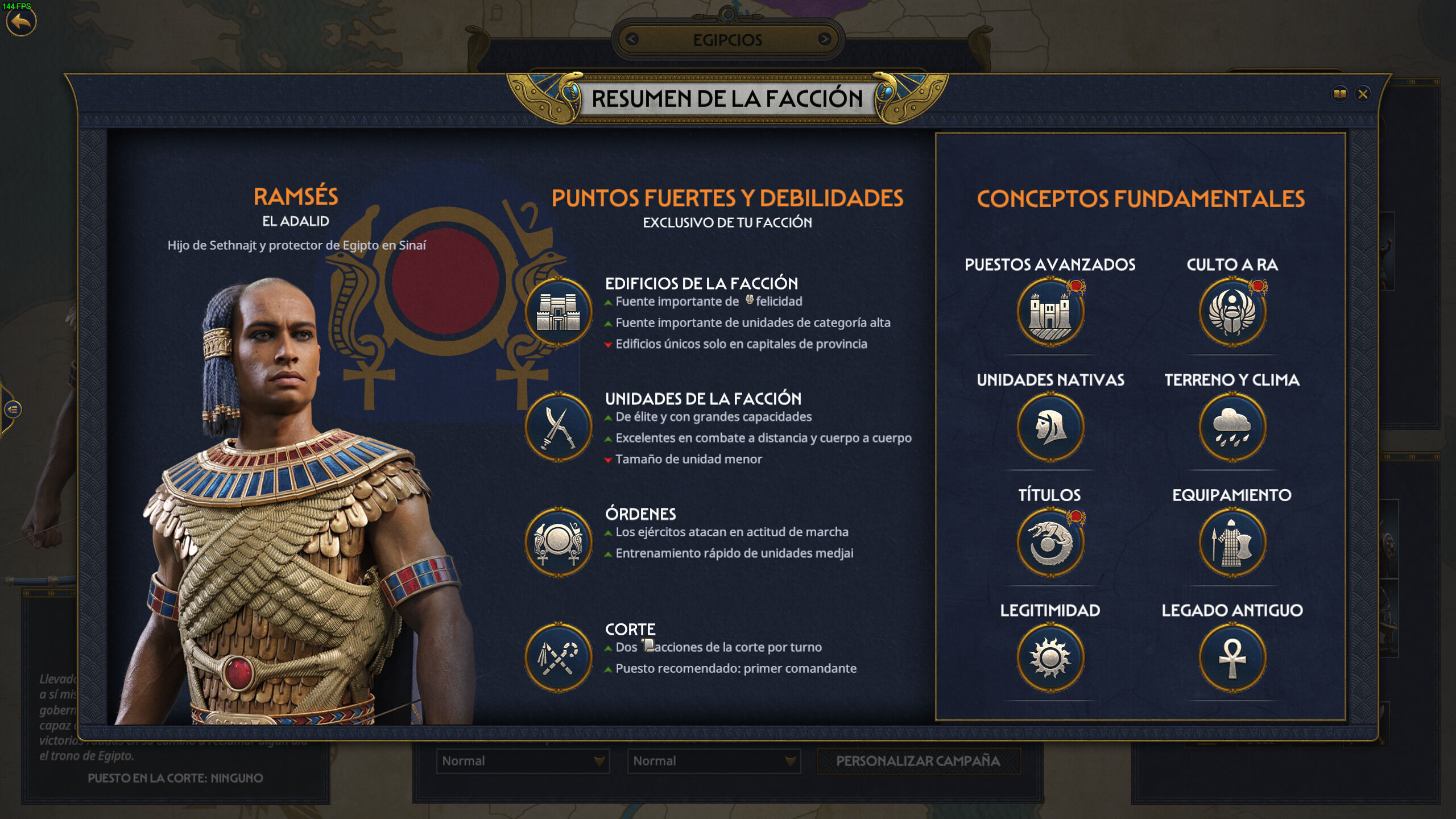 Mientras intentamos cumplir este objetivo descubriremos el antiguo Egipto tanto fuera como dentro del campo de batalla. Fuera lo haremos con un mapa de campaña gigantesco, mucho más rico en detalles y más variado de lo que al principio pueda parecer si comenzamos en una zona un tanto más desértica, siendo una recreación muy bien llevada de las orillas del Nilo o de otros puntos geográficos clave.
