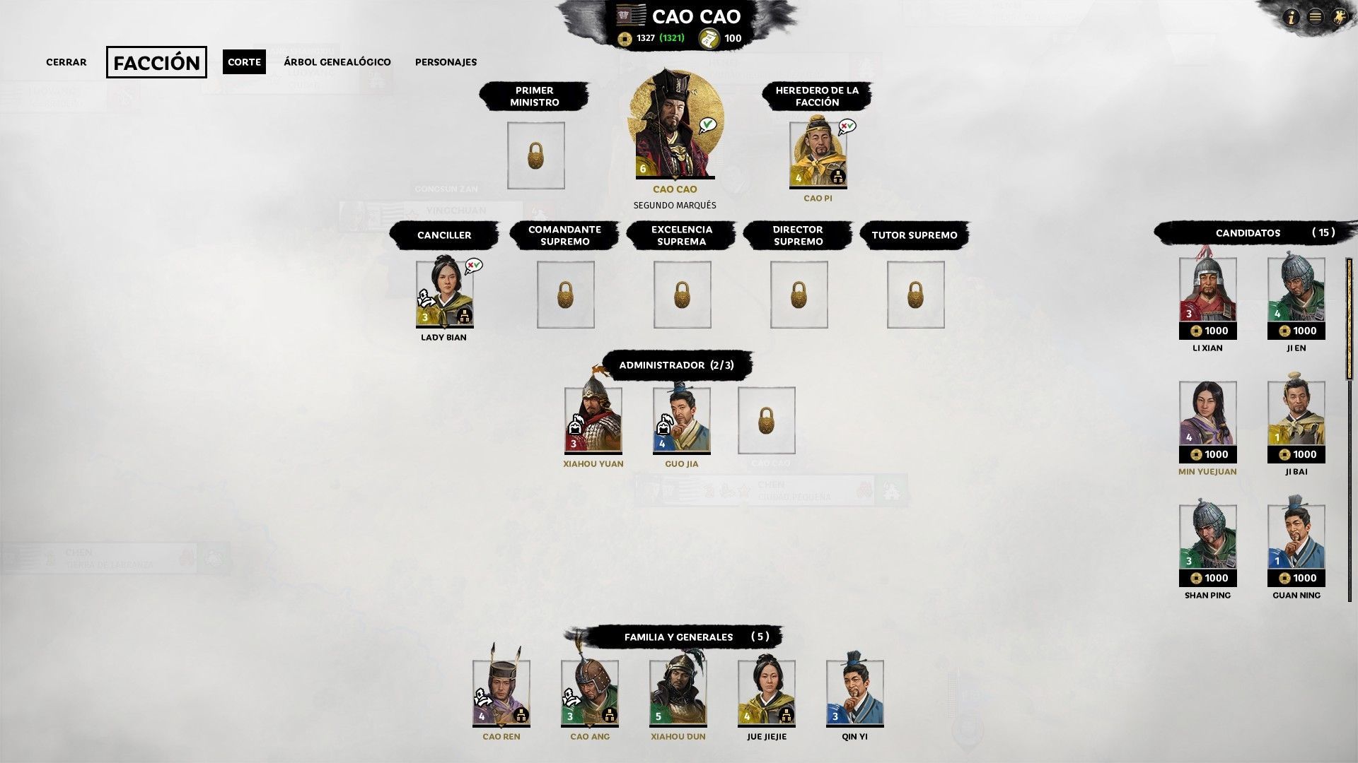 Este efecto de estar creando historia tendría mucha más fuerza si los personajes fuesen más conocidos al jugador Occidental pero inicialmente es algo confuso no diferenciar bien a las facciones y entender quién nos pide un acuerdo; algunos conocerán a los personajes más conocidos, pero en Three Kingdoms importa el nombre y características hasta del gobernador de la comandancia más pequeña. En el lanzamiento el juego tiene 12 facciones jugables (11 iniciales y una desbloqueable) divididas en la coalición de señores que se opuso a Dhong Zhuo, gobernadores y forajidos. Quienes hayan reservado el juego o lo compren la primera semana tendrán como contenido adicional a tres líderes de los turbantes amarillos, un levantamiento campesino que propició la caída de la dinastía Han.