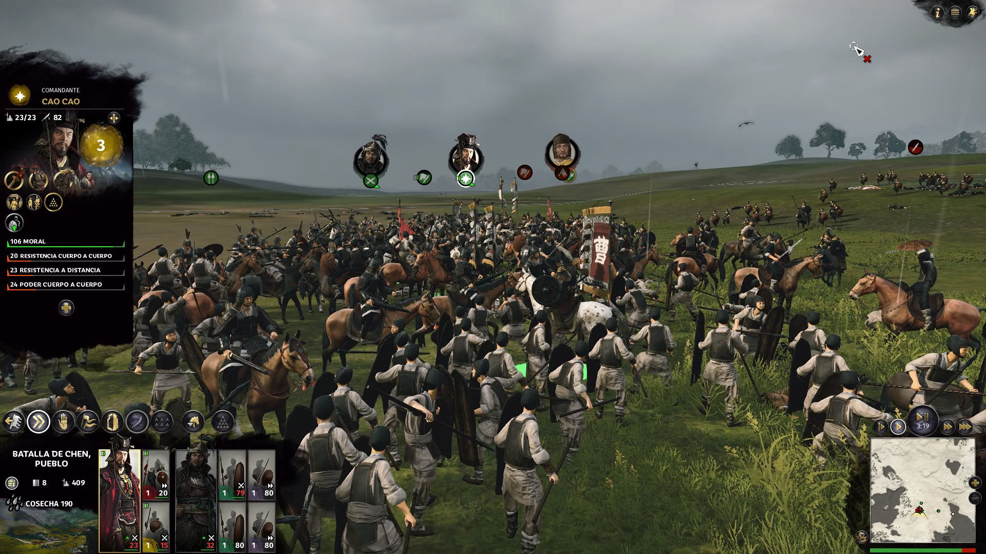 A las relaciones interpersonales y el Wu Xi se suman el habitual comprobar que se tienen los recursos necesarios para construir y combatir- Como dijimos antes, el estudio ha reconvertido algunas de las ideas de sus últimos juegos y hay que asegurarse al entrar en territorio enemigo de que no faltan los suministros porque, de lo contrario, el ejército y su moral no tardarán en notarlo, lo que lleva a que la campaña sea ágil, con las tropas en constante movimiento y con la necesidad de expandirse.