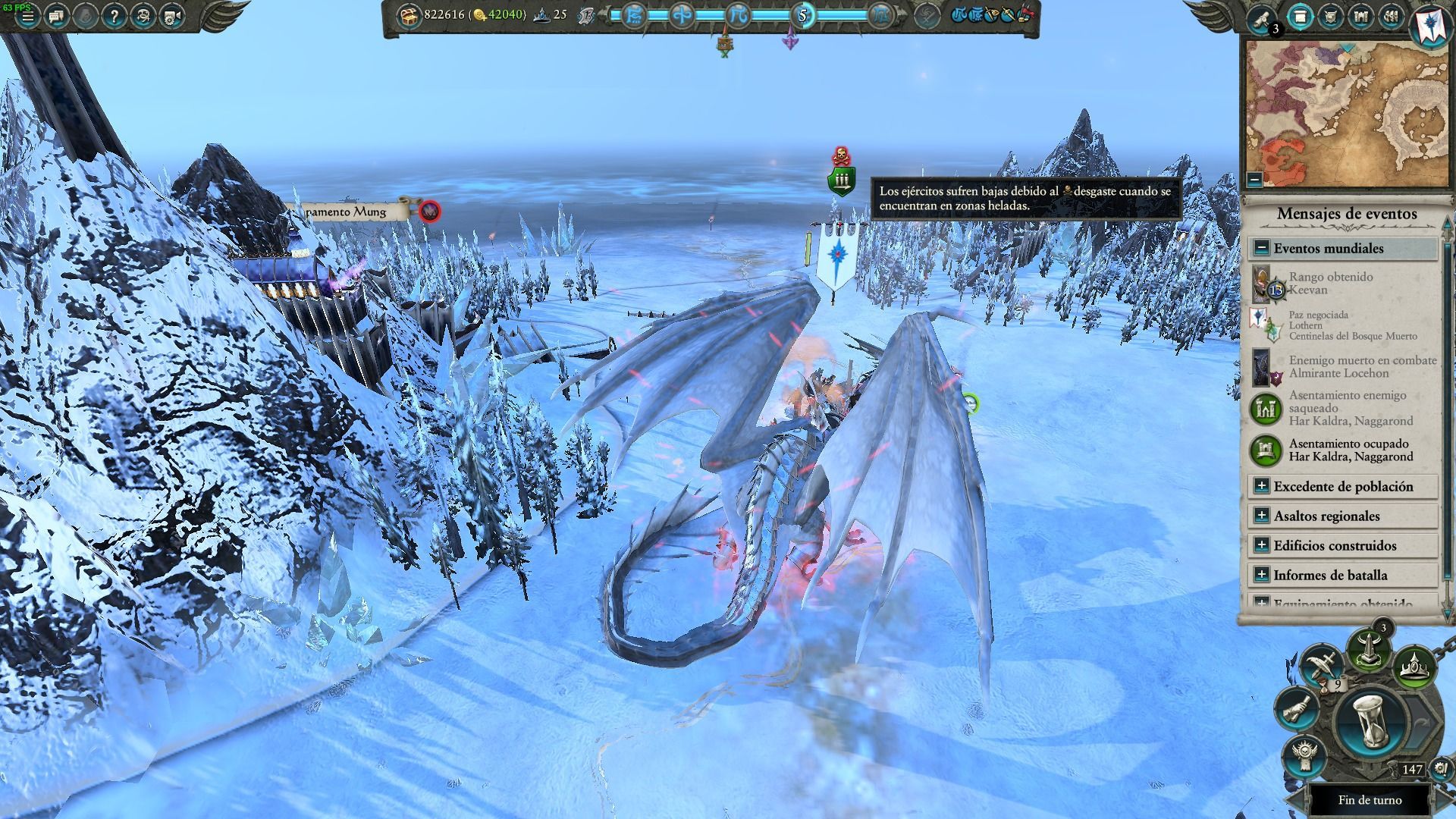 Sin embargo, cada raza tendrá un clima adecuado para su supervivencia y si, por ejemplo, como Hombres Lagarto estamos preparados para sobrevivir mejor en tierras cálidas y húmedas nuestras unidades lo pasarán mal cuando conquistemos los helados territorios del norte de Naggaroth, haciendo que la supervivencia de nuestras tropas fuera de los asentamientos se haga muy cuesta arriba, mermando la fuerza de nuestro ejército.