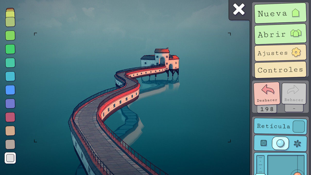 Por último, hay también toda una colección de detalles que consiguen que este juego sea plenamente satisfactorio a los sentidos y, desde lo inconsciente, nos mantiene atrapados en un ejercicio que roza lo zen: el chapoteo del agua cuando colocamos una nueva superficie, el sonido de cada nuevo bloque que creamos, la forma en la que aparecen y desaparecen las casitas que colocamos o eliminamos… De nuevo, en Townscaper nada está hecho por casualidad, todo persigue un interés por hacer satisfactorio la mera construcción, y en Nintendo Switch eso se ve multiplicado por la genial adaptación de los controles a su pantalla táctil.