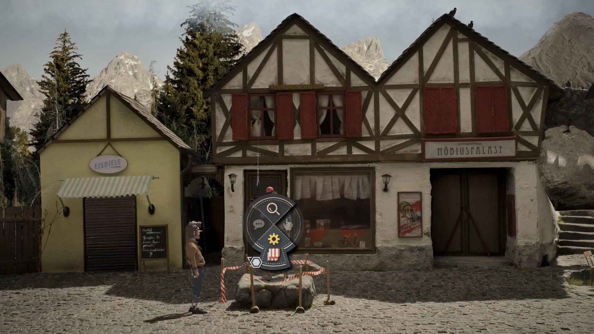 El comienzo de Truberbrook es precioso; en él una motorista llega a una gasolinera abandonada y busca los elementos necesarios para arreglar su moto. Son unos pocos minutos pero en ellos el juego ya muestra algunas de sus bases: unos escenarios hechos a mano, unos personajes estilizados y con estilo y puzles clásicos. Mejor aún es la pantalla de créditos iniciales en la que una DKV recorre un serpenteante camino de ascenso a una montaña mientras, si pulsamos el ratón, suena el cláxon del vehículo. Todo tiene el aspecto de una miniatura real llena de detalles y transmite esa sensación porque, en efecto, los escenarios del juego son reales; se crearon maquetas a escala y después WhisperGames utilizó la fotogrametría para tener la información tridimensional de todos los objetos y reproducirlos.
