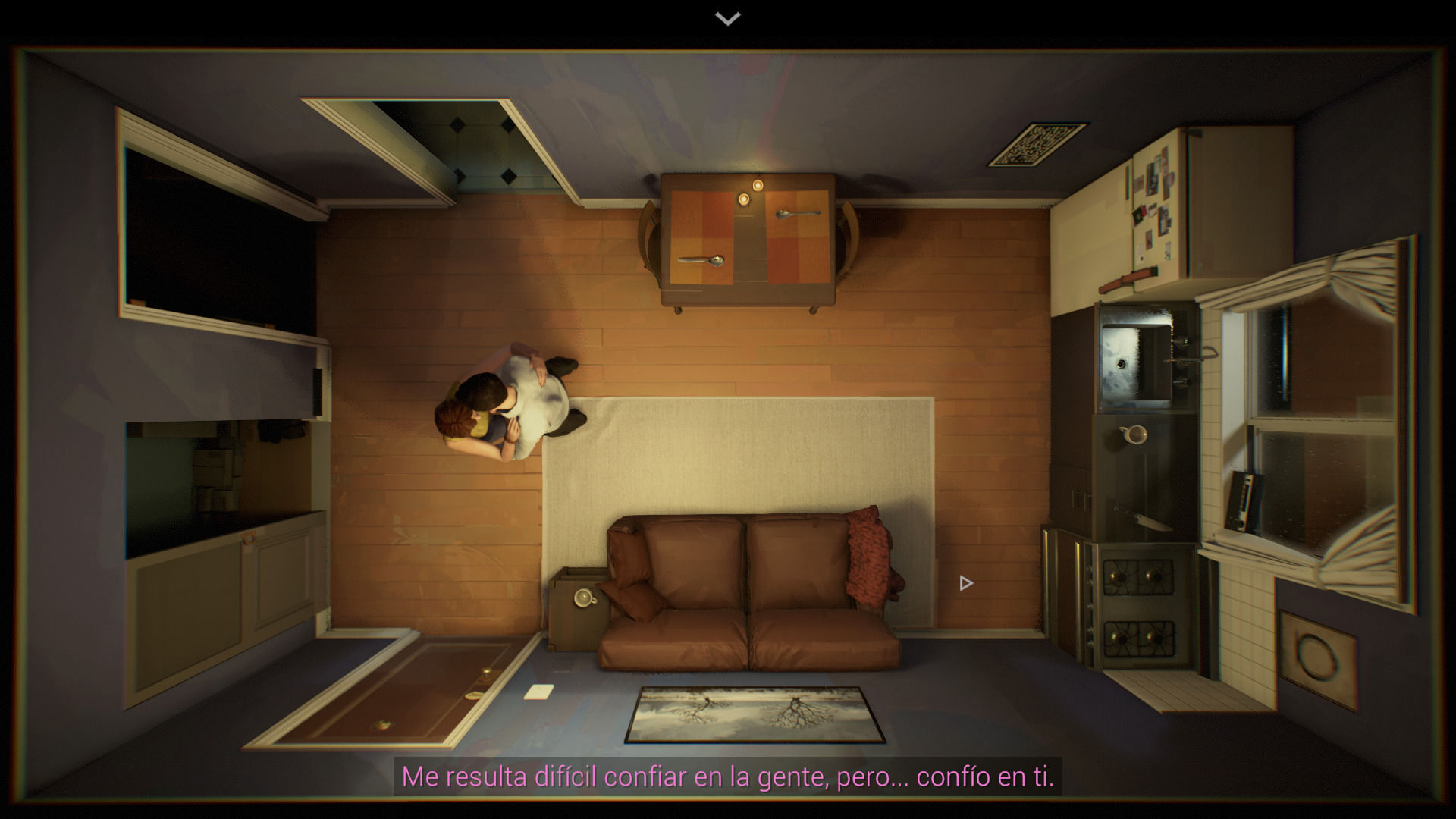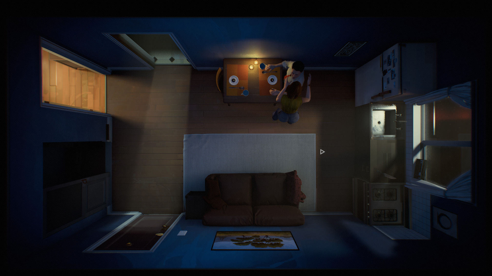 Que la cámara esté colocada ahí también evita tener que dedicar recursos a las animaciones faciales para dedicarlos todos, primero, a recrear con un estilo detallado pero no fotorrealista todos los elementos del apartamento, y segundo, a dotar a los personajes de unas animaciones dignas de una superproducción. Sorprende tanto ver la naturalidad con la que baila la pareja, el realismo con el que el policía maniata al matrimonio y las detalladas animaciones de un puñetazo o el cómo los personajes se levantan del suelo; como las variadas reacciones en forma de diálogo cuando se les presenta un objeto o realizas alguna acción que llama su atención.