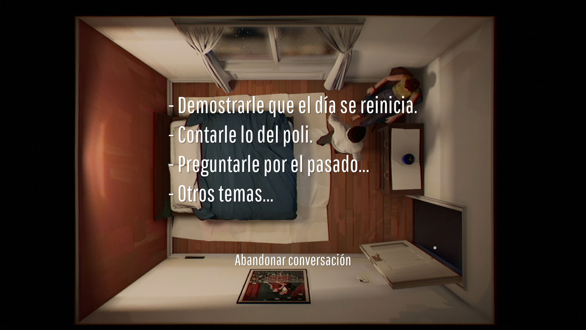 La vuelta de tuerca a una mecánica tan clásica como la descrita está en ese bucle temporal: estamos jugando contrarreloj. En los hasta doce minutos que puede durar el bucle tendremos que realizar las acciones y diálogos que consideremos en el orden apropiado para conseguir la información que pretendemos sacar de esa partida. Cada intento es como un puzle poliédrico cuyo resultado depende de la colocación de las piezas de distinta manera, de modo que afectamos al devenir de los personajes y de las conversaciones.