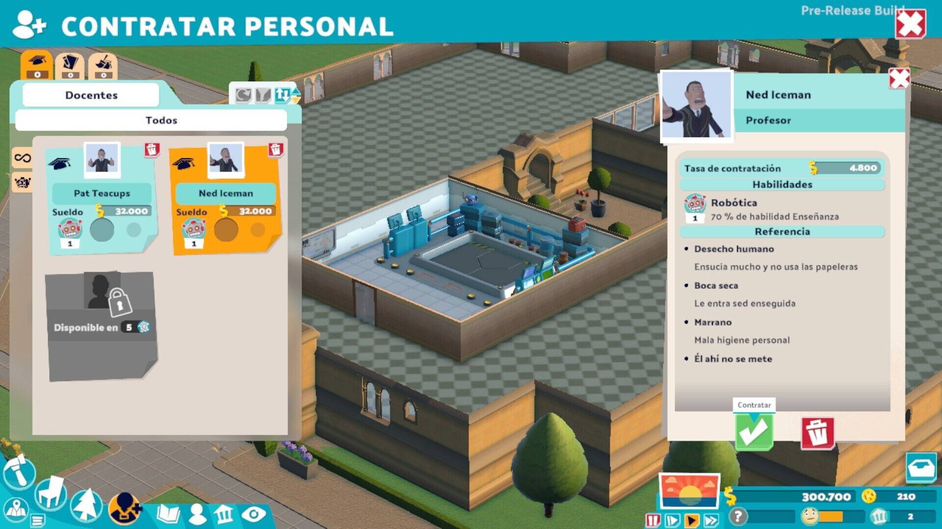 El comienzo del juego es algo lento, tarda en arrancar (sobre todo si ya tenemos experiencia con el género) y puede llegar a dificultar el aterrizaje en sucesivas partidas en las que empecemos de cero. No obstante, para neófitos es una magnífica idea: en la primera facultad aprendemos los controles básicos, incluyendo la cámara e interfaz (todo diseñado de forma muy intuitiva, por cierto), después pasamos a construir salas (con un sistema que podría mejorar, resultando a veces algo frustrante y confuso), contratar personal y gestionar el campus de una forma amplia. En los siguientes niveles ya se nos enseñan cosas más profundas, como organizar eventos, formar a nuestros empleados o gestionar situaciones aleatorias (como que un ejército enemigo invada nuestra universidad).