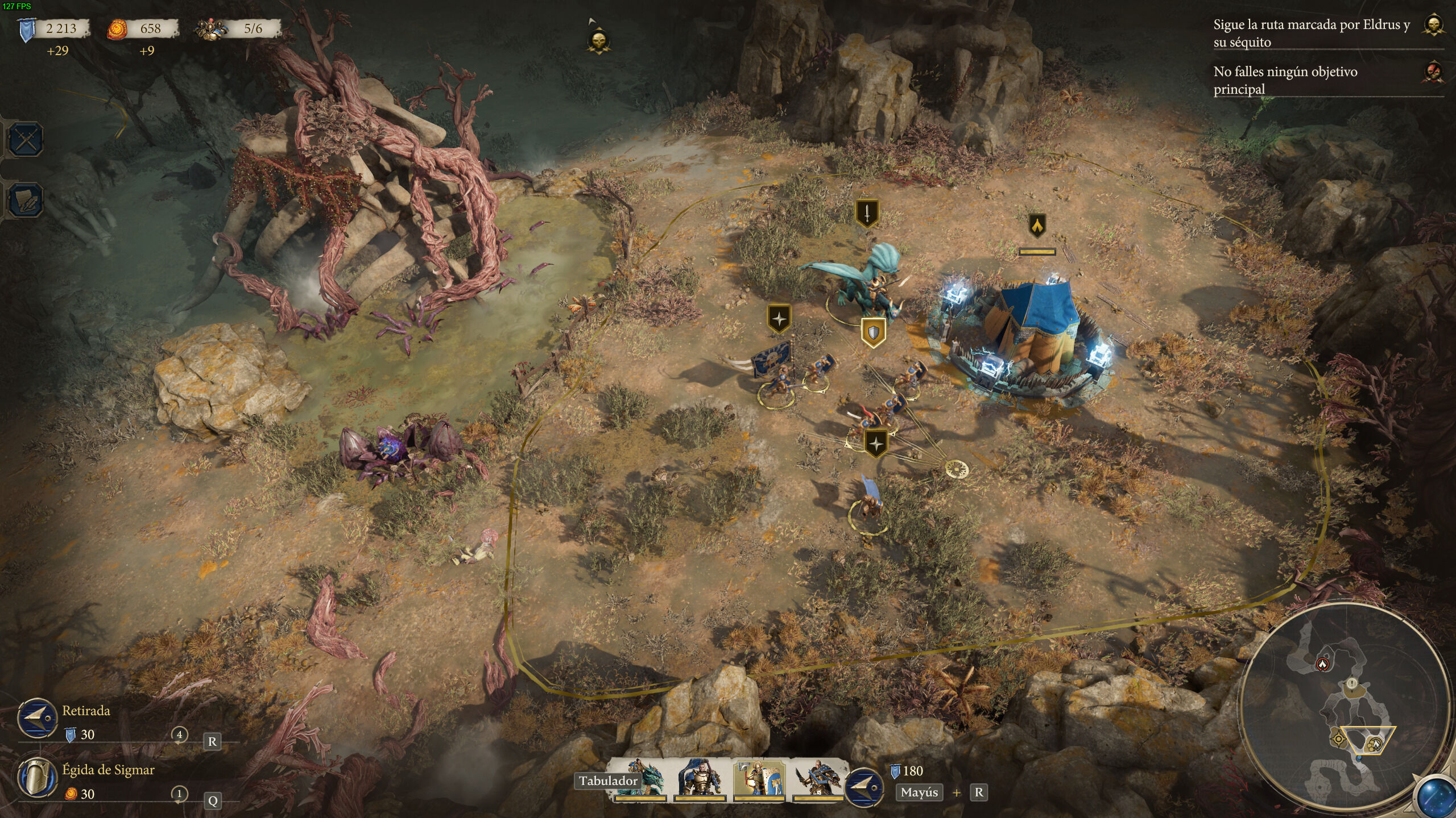 También hemos jugado un poco en PS5 para probar si funcionaba de forma correcta y la adaptación de los controles al mando. Aquí no podemos ser tan rotundos en cuanto a rendimiento porque no hemos jugado tanto, pero durante nuestras partidas sí jugamos a 4K y 60 FPS sólidos. Por otro lado, la adaptación al mando es bastante buena y el ritmo que resultaba algo lento o tedioso en PC es mucho más disfrutable si tenemos que recurrir al mando, lo que nos hace pensar que Warhammer Age of Sigmar: Realms of Ruin se ha desarrollado pensando especialmente en los jugadores de consola y no tanto en los de PC.