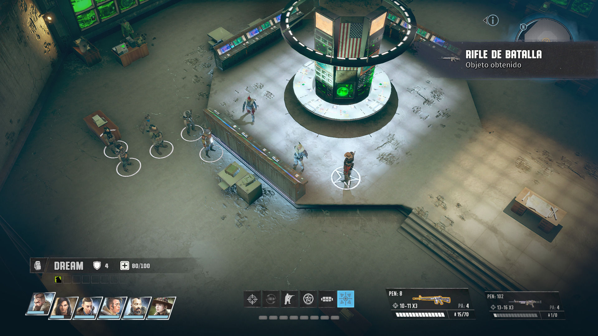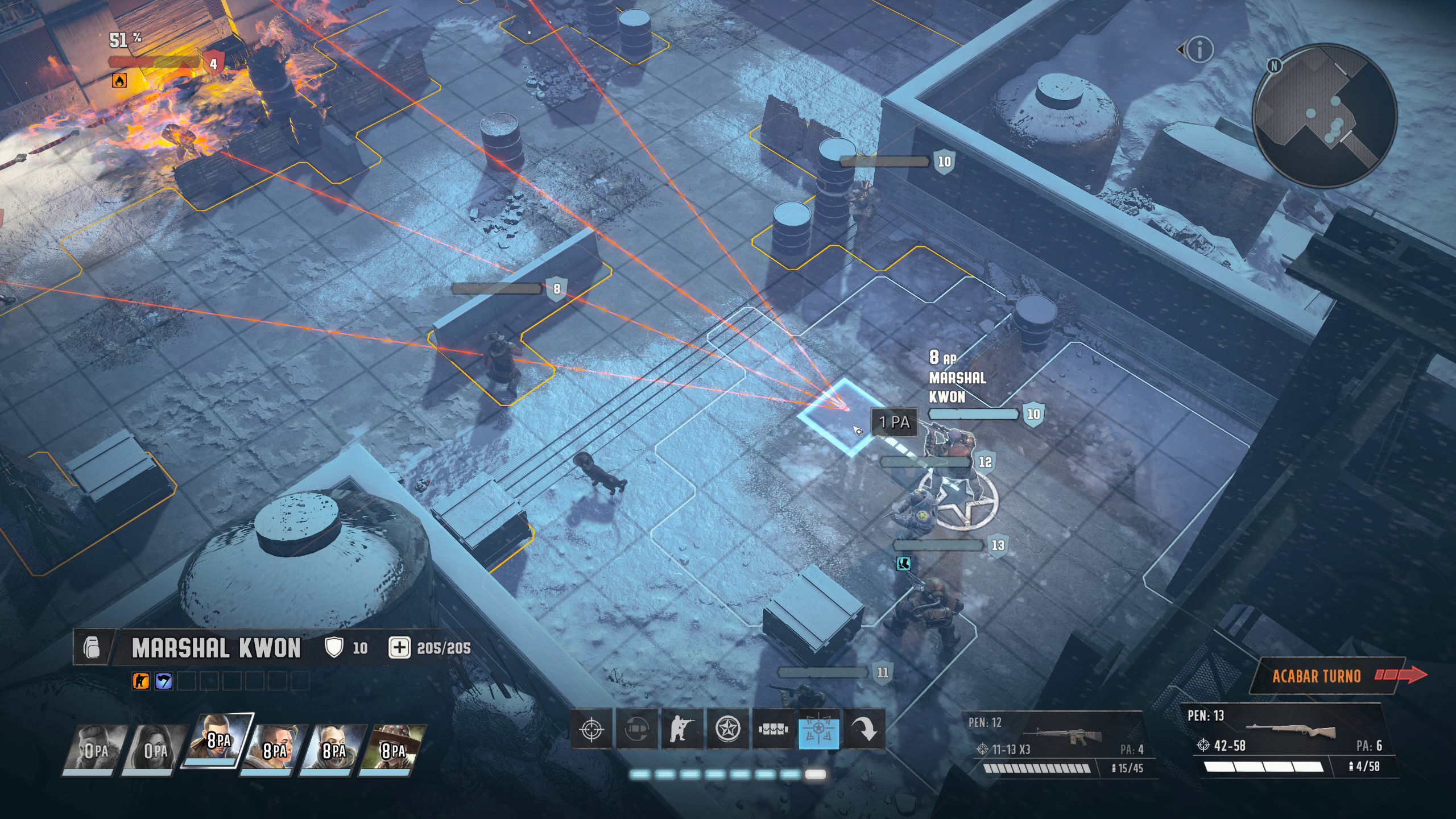 Entrando ya en materia, nos encontramos con un combate en el que los turnos se dividen entre las dos "facciones" es decir, entre todo nuestro equipo y todo el equipo de nuestro rival. Durante nuestro turno podemos escoger con libertad qué personaje queremos que se mueva primero e incluso interacturar con libertad entre los mismos, pudiendo por ejemplo mover primero un personaje, realizar una acción con otro y luego volver a este primero para disparar o ejecutar cualquier otro comando. El único límite en este sentido está marcado por los PA (Puntos de Acción) con los que cuenta cada uno de nuestros personajes en cada turno, con el movimiento o las distintas habilidades costando una cantidad diferente de PA.