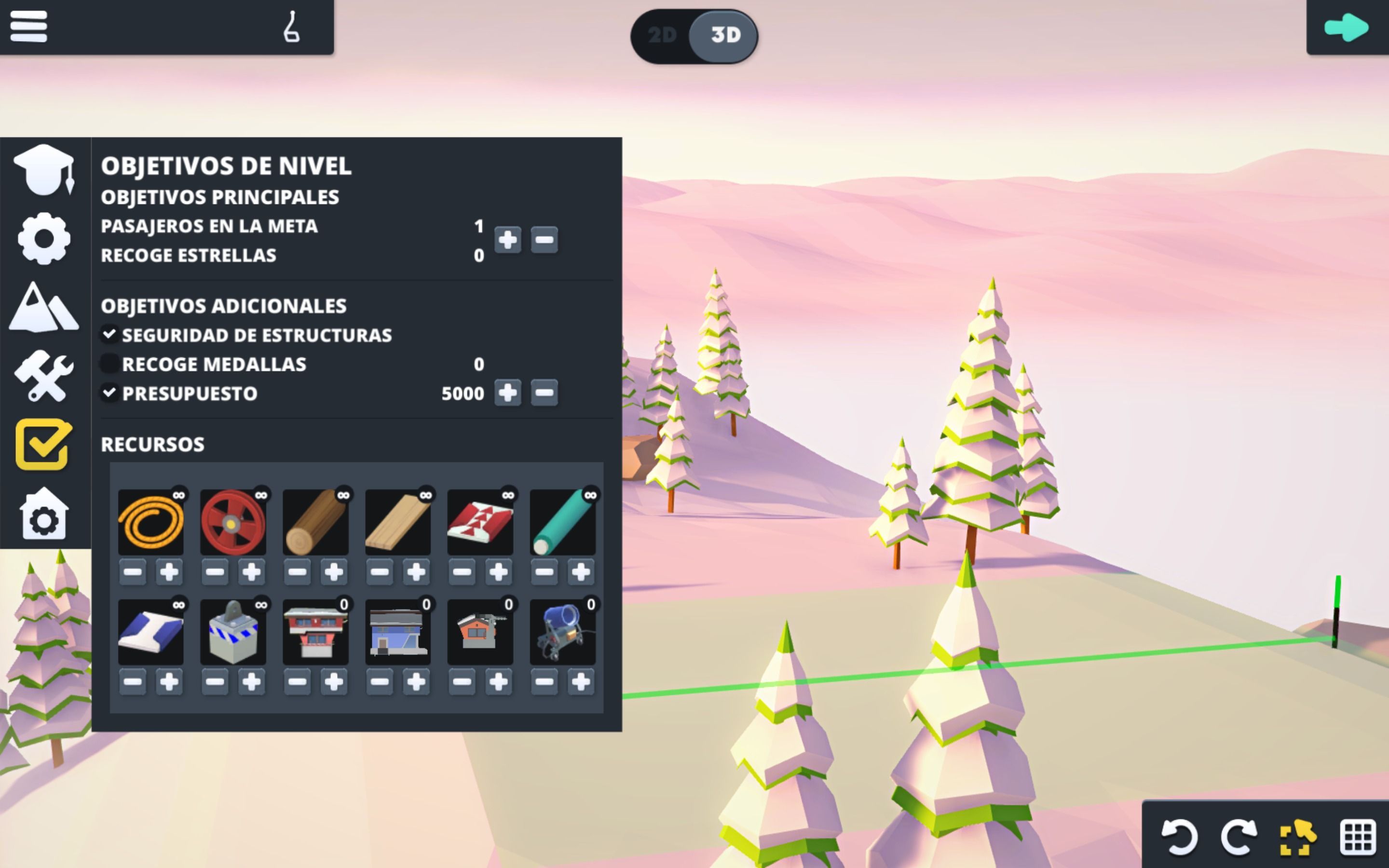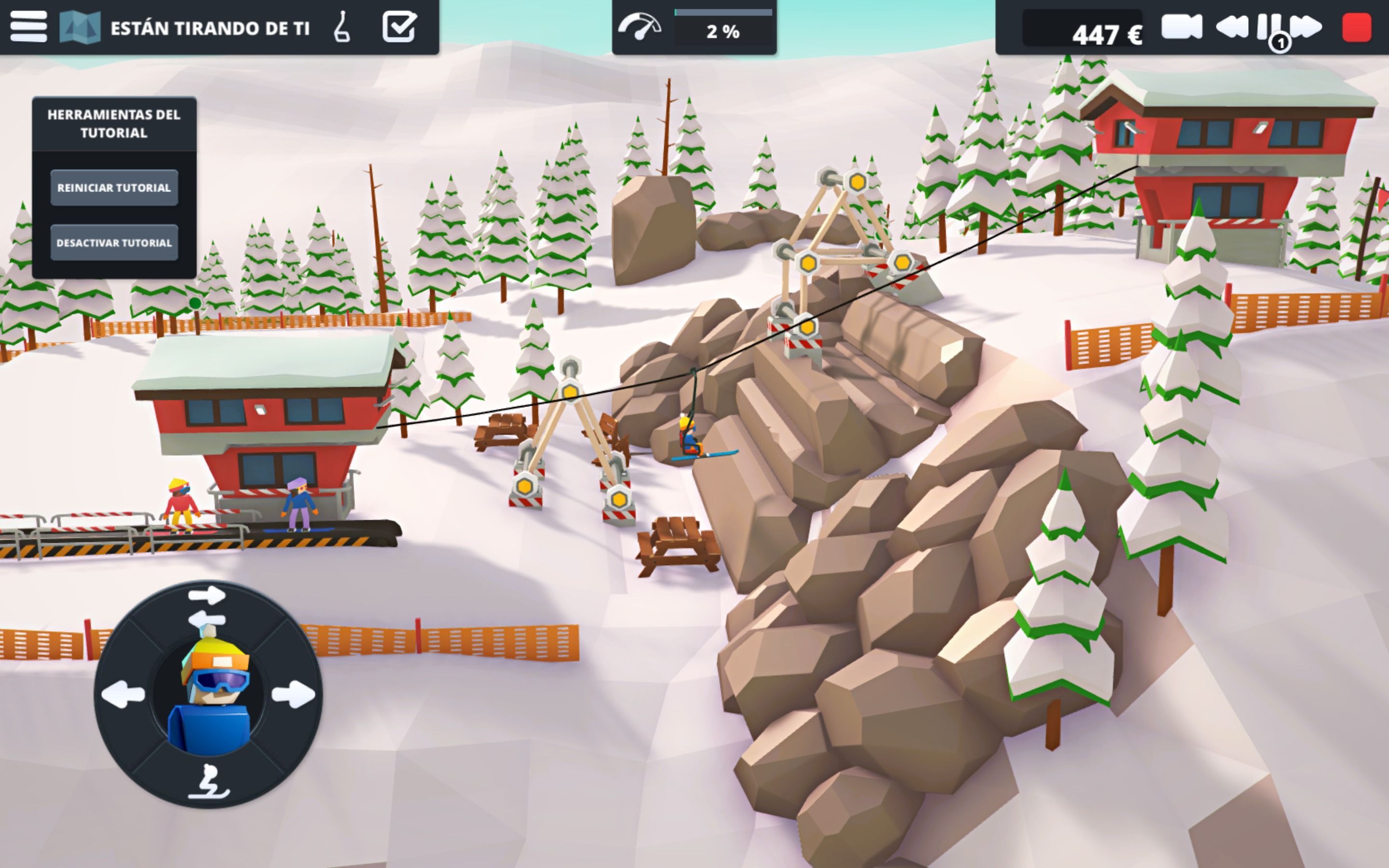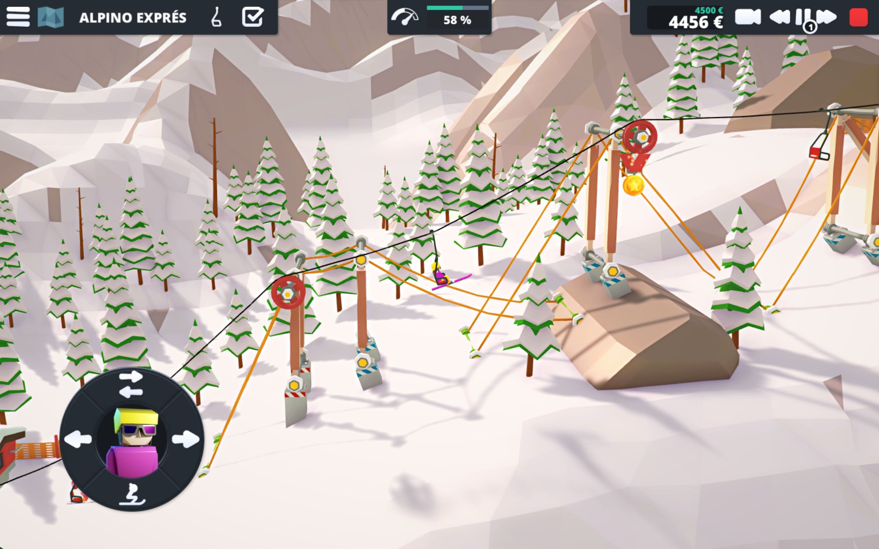 Gestionar una pista de esquí no es tarea grata, y pronto nos daremos cuenta. Pese a que hablamos de un juego que es bastante sencillo en sus primeros compases, a lo largo de sus más de 50 niveles de la campaña principal tendremos que dominar la física de las cuerdas, comprobando hasta qué punto podemos controlar su tensión, aprender de las cualidades de las poleas o comprender, a fuerza de ensayo y error, cómo las estructuras triangulares son una buena forma de aportar robustez a nuestro absurdo e impensable telesilla. No os preocupéis si nuestra góndola acaba en la nieve una y otra vez. El título, una vez superamos esa pequeña barrera inicial del principio, comienza a darnos más materiales y elementos, como pilares, estructuras de madera más sólida, rampas y otros, abriéndose todo un plantel de posibilidades.