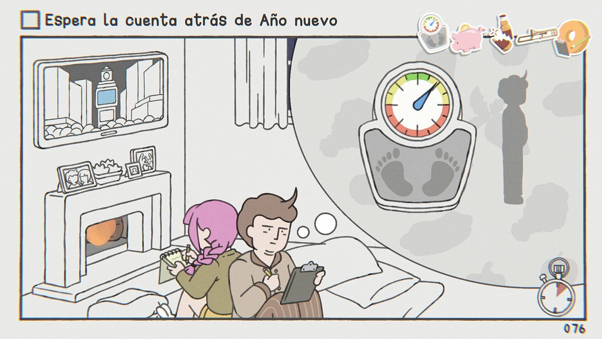 Como decíamos, reducir este título a un único género sería hacerle un flaco favor a sus intenciones. Y es que en cada nivel, en cada viñeta de esta vida, tendremos dos capas de objetivos: el primero sería no hacer nada y ver pasar la vida del personaje, y el segundo, quizás el más jugoso en una primera partida, es conseguir los "stickers" con distintos objetivos antes de que la espera termine y pasemos al siguiente nivel.