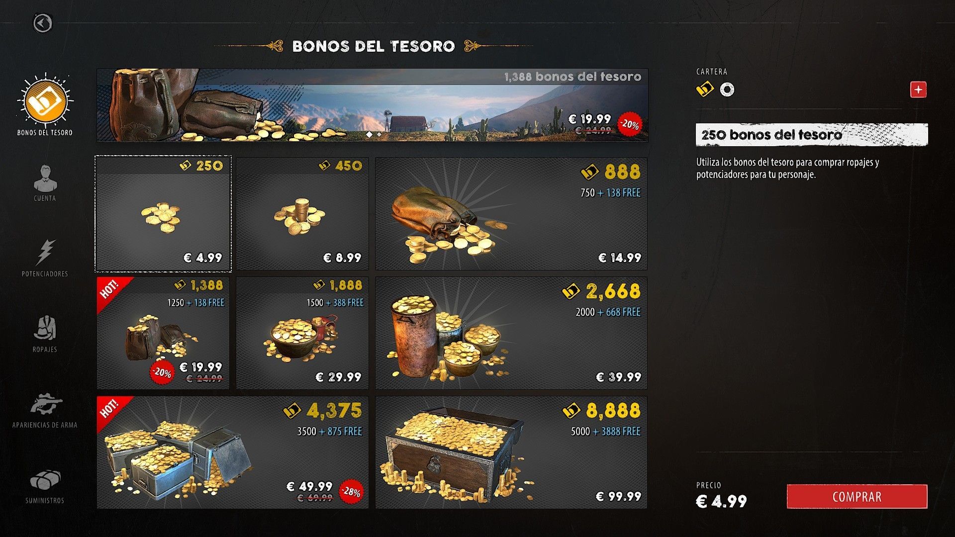 Aquí aparece uno de los puntos más conflictivos de Wild West Online, ya que encontramos una enorme cantidad de micropagos tanto estéticos como jugables. Vamos a poder comprar todo tipo de bolsas con distintos niveles de rareza para conseguir pantalones, camisas, pañuelos o cartucheras, algo que también sucederá con el aspecto de nuestro caballo. Además, será posible adquirir potenciadores vinculados a días o eventos, los cuales nos permitirán conseguir más puntos de experiencia al completar actividades o durante un periodo de tiempo.
