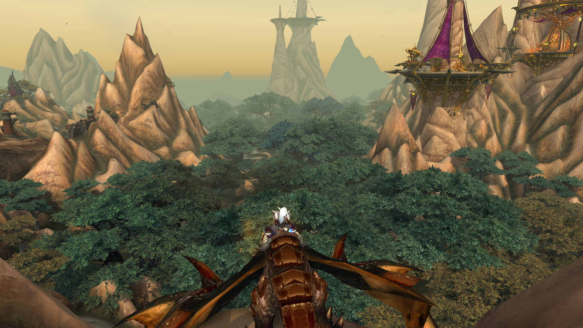 Un detalle que nos ha llamado mucho la atención es que a día de hoy no se puede volar en este nuevo mundo con nuestra montura, ni siquiera al llegar al nivel 100, por lo que tendréis que recorrerlo en por tierra o con los distintos vuelos, algo que en cierto sentido recupera un poco las sensaciones que muchos vivimos originalmente hace 10 años, cuando todavía no existían las monturas voladoras, lo que da pie a ciertas situaciones entre la Horda y la Alianza en los servidores PvP muy interesantes e incluso nostálgicas (que por cierto, ahora hay un genial mapa de mundo abierto con objetivos para darnos de tortas con la facción enemiga).